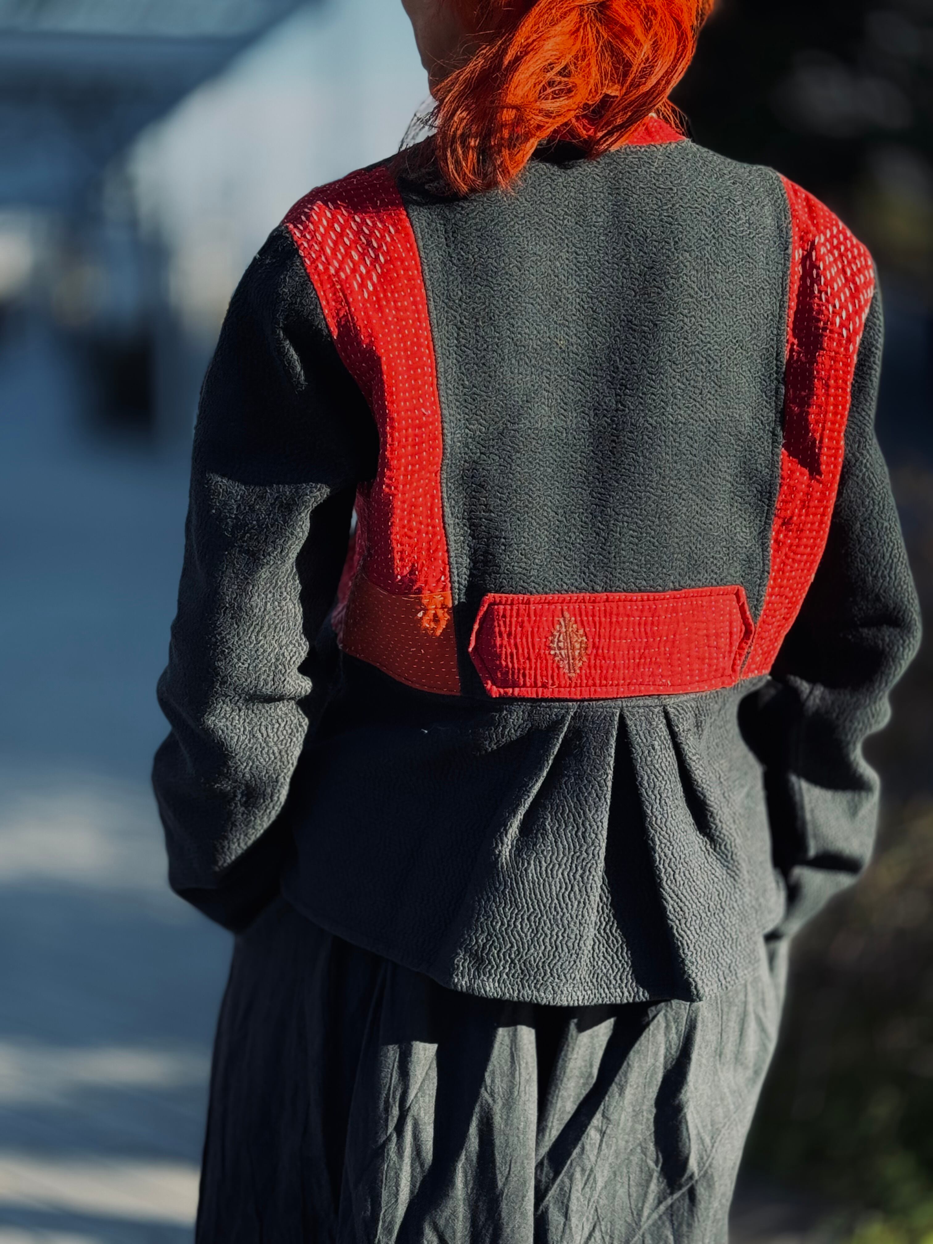 非常に繊細で細かい手仕事のオールド カンタ キルト を施したリバーシブル ジャケットです。Special⭐︎
