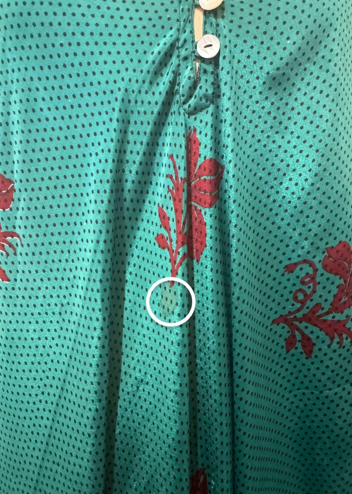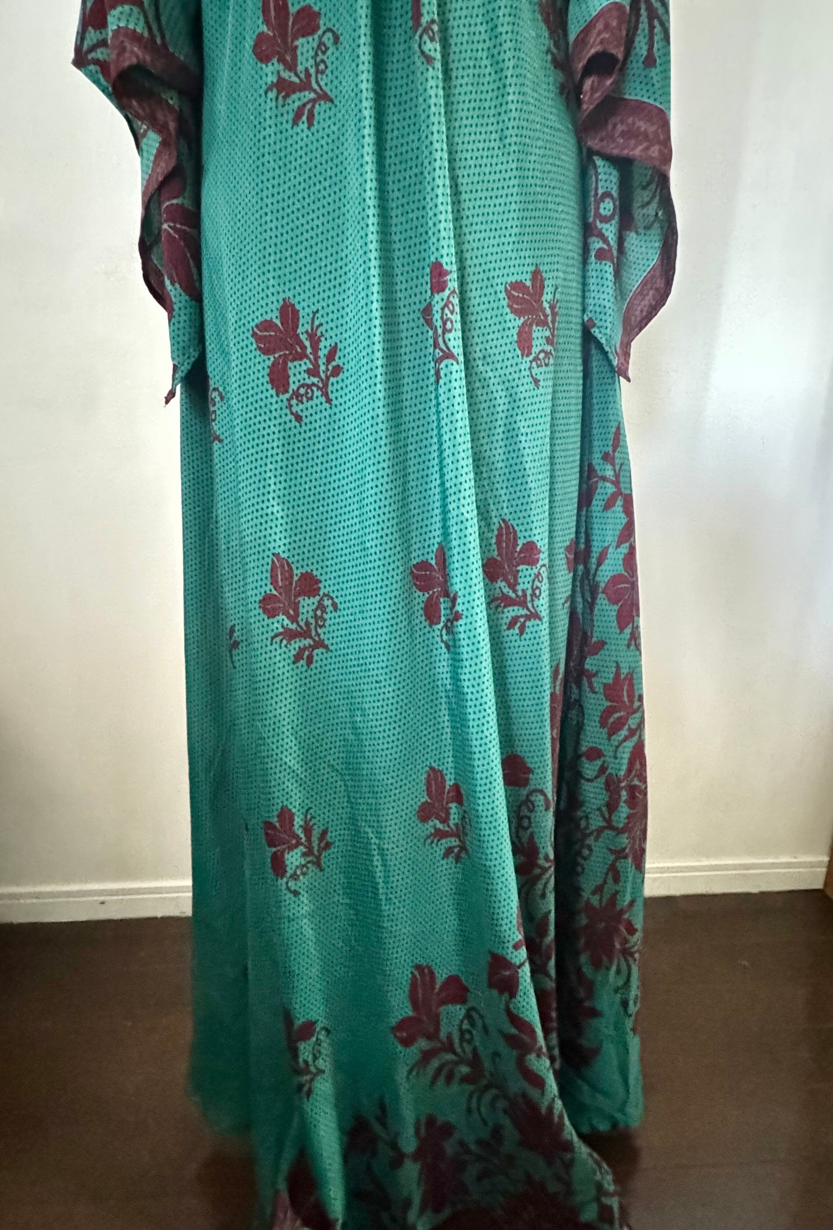 1950〜60年代頃の古いシルク サリーをリワークして製作されたオンリー ワンのマキシ ドレスです。