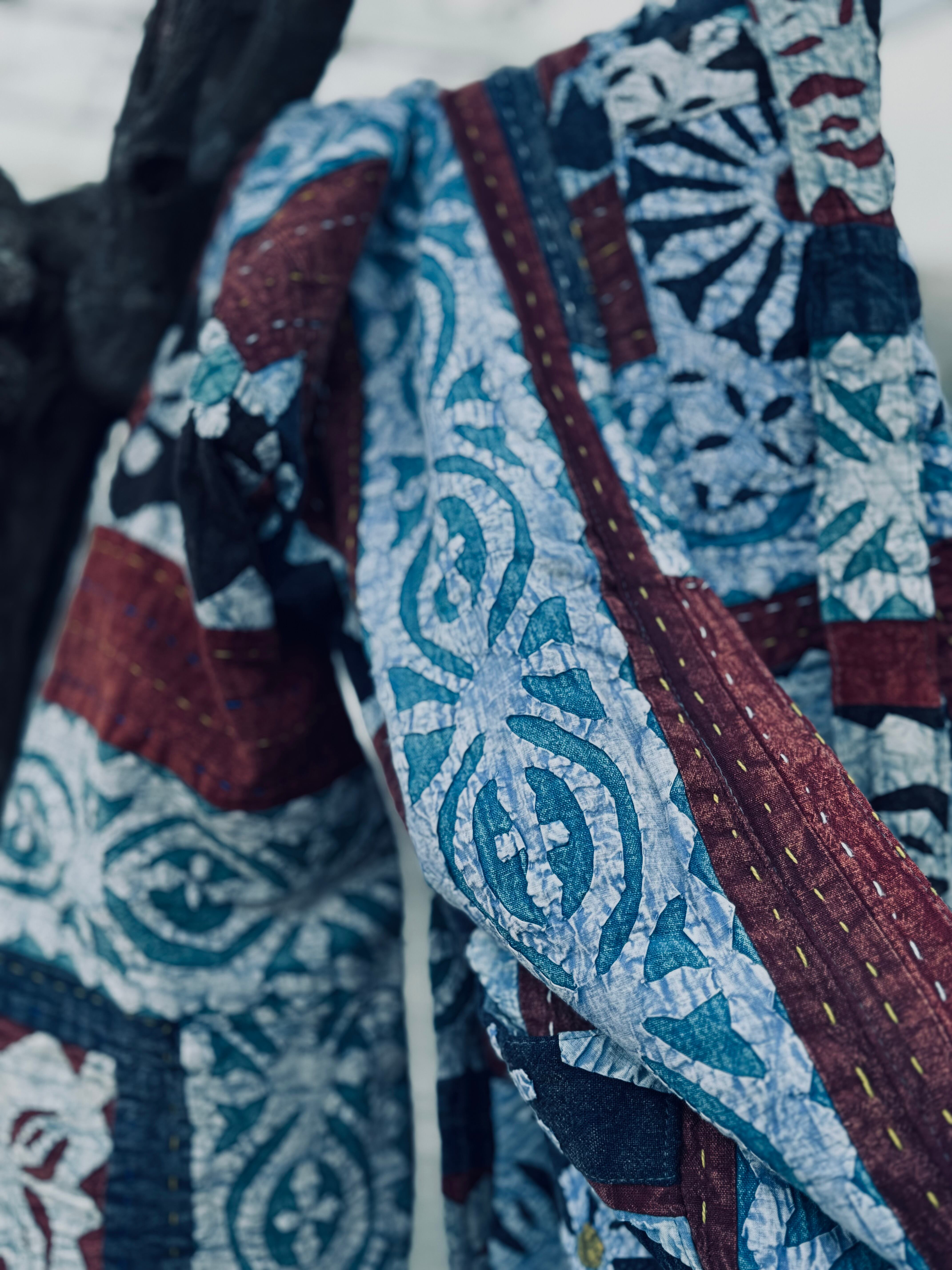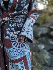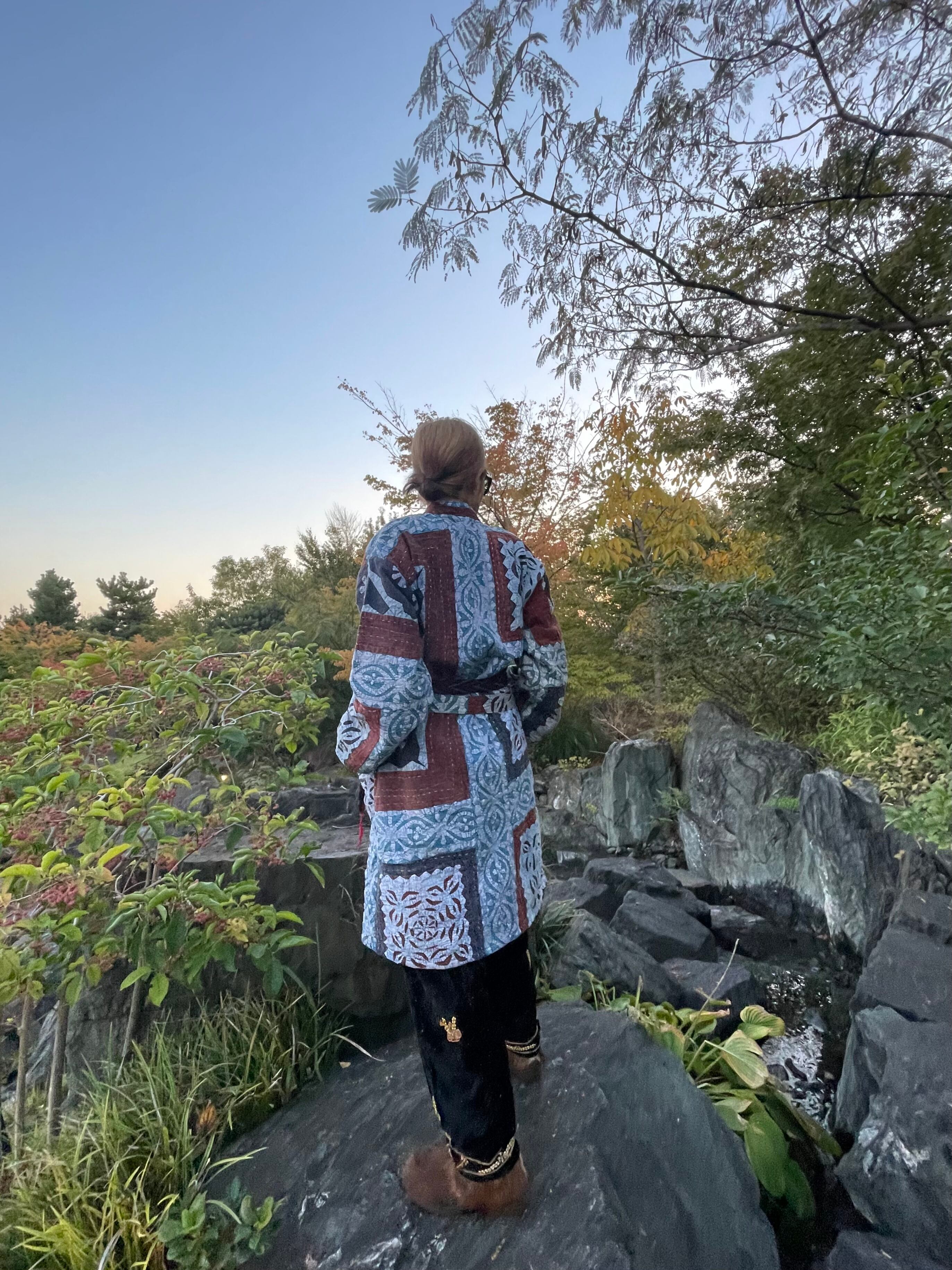 たっぷりとしたオーバー サイズのジャケットに、全面に施したカットワークが見事な手仕事のジャケットです。