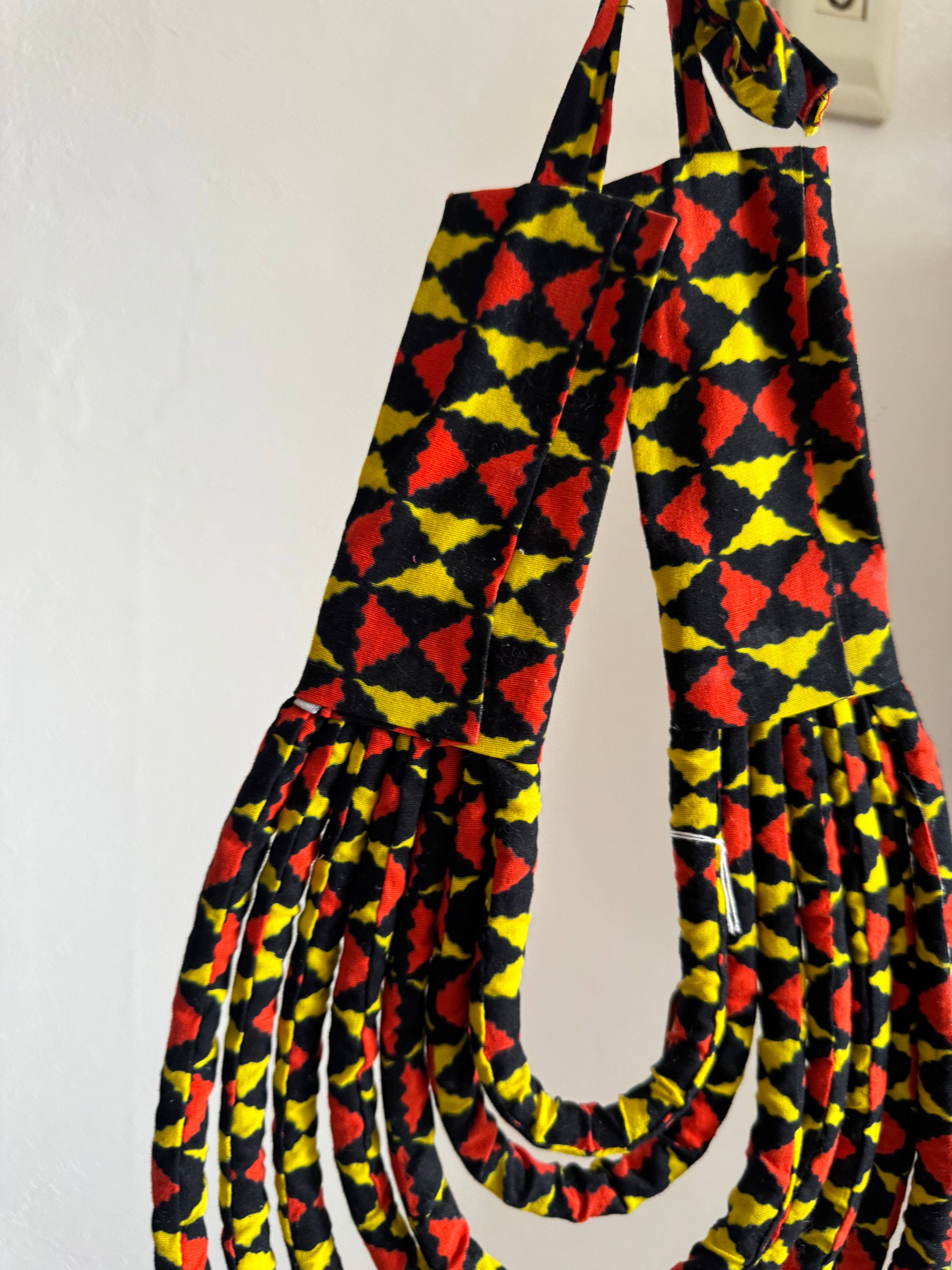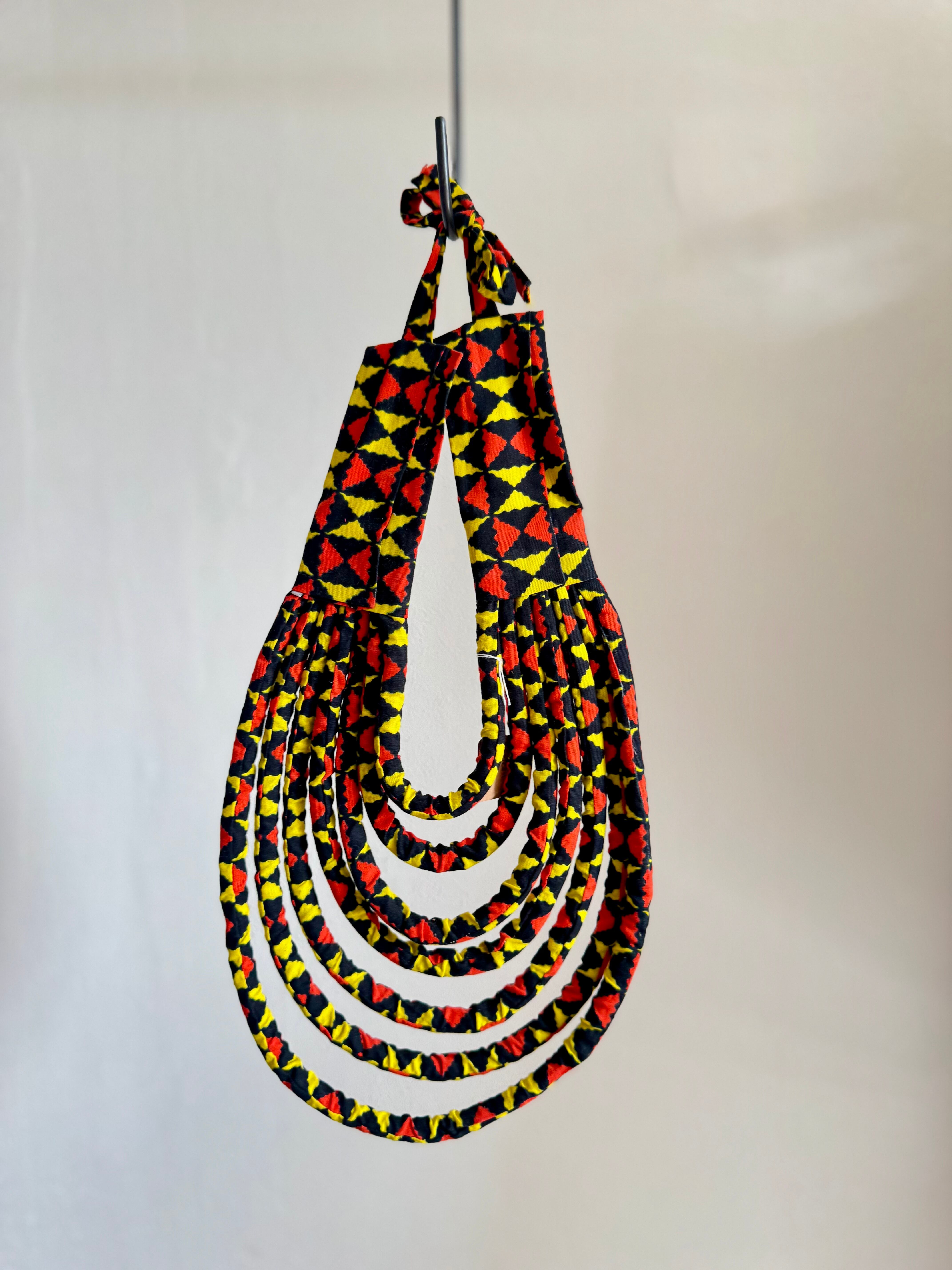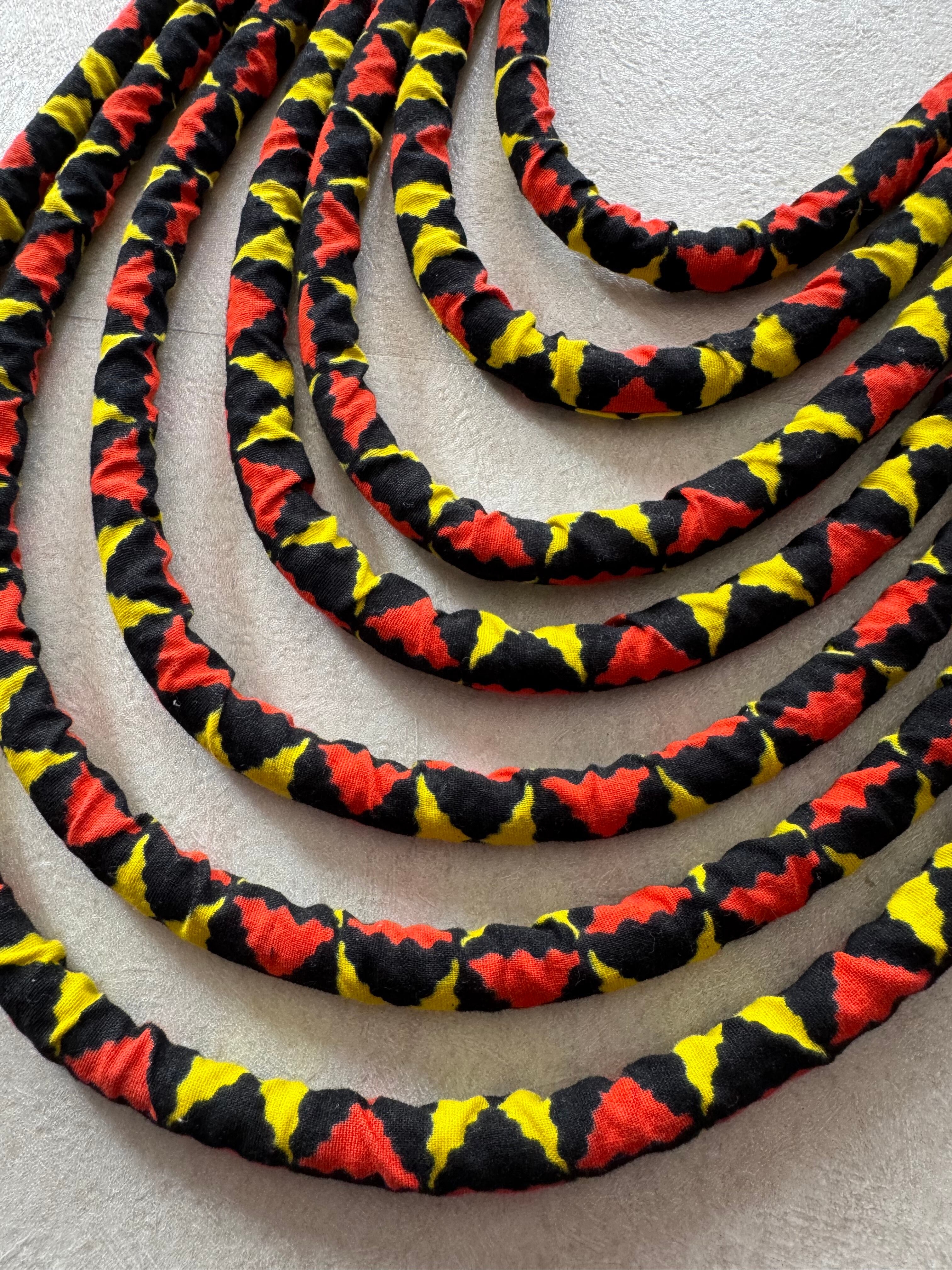 内側にコットン ロープを入れて、きっちり巻き込み製作された とても手の込んだハンドメイドのアフリカン ネックレスです。