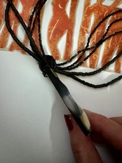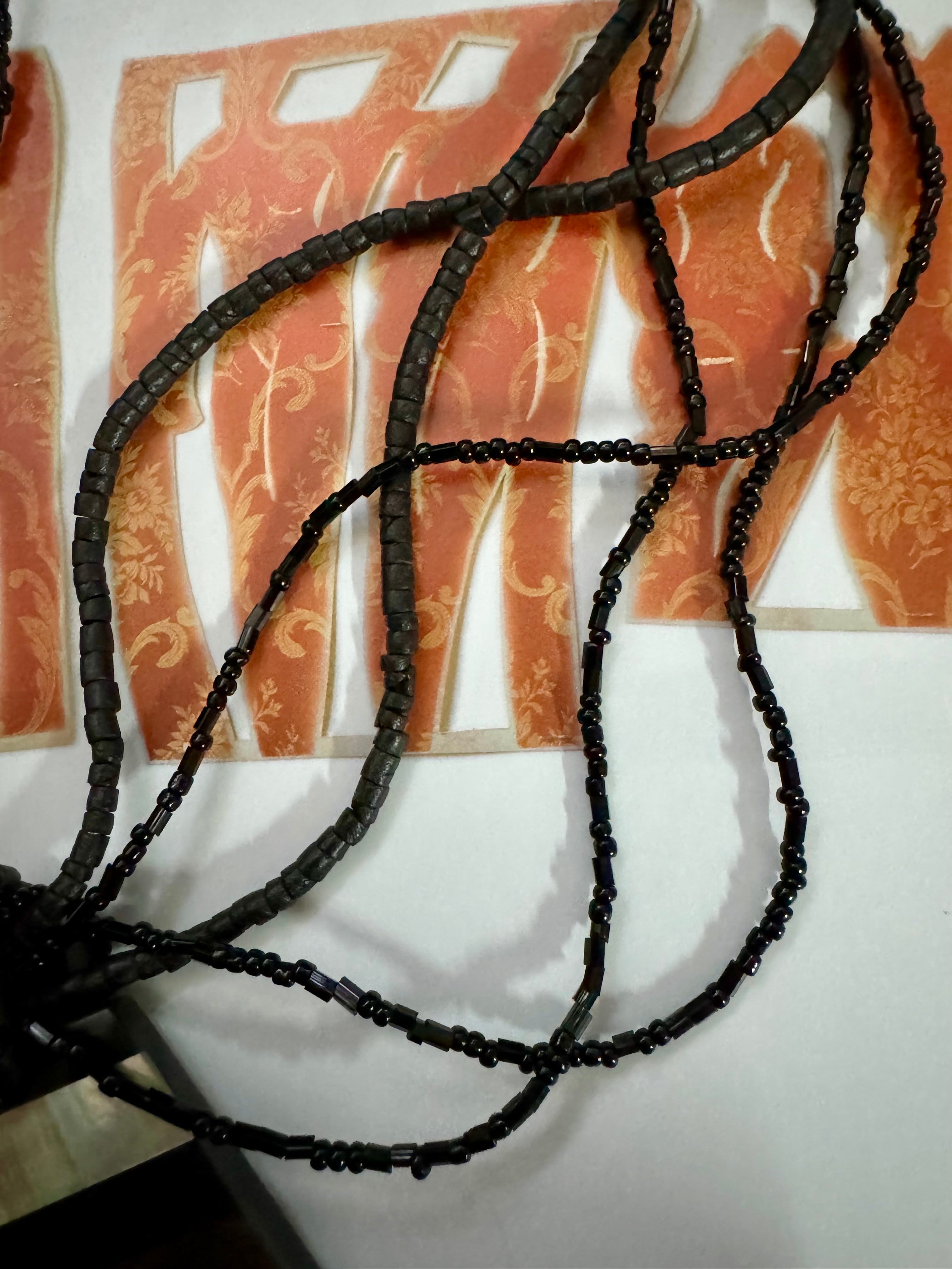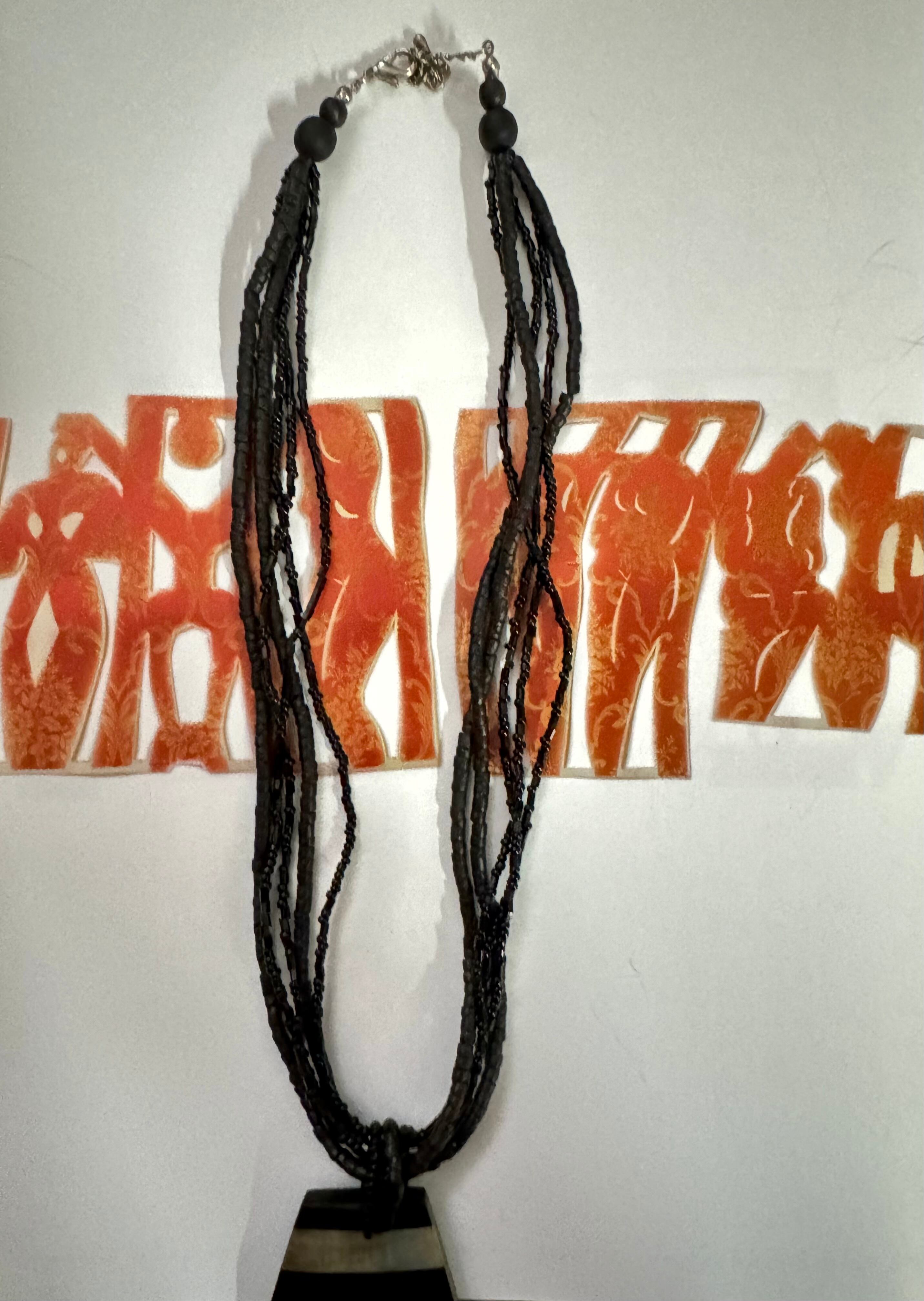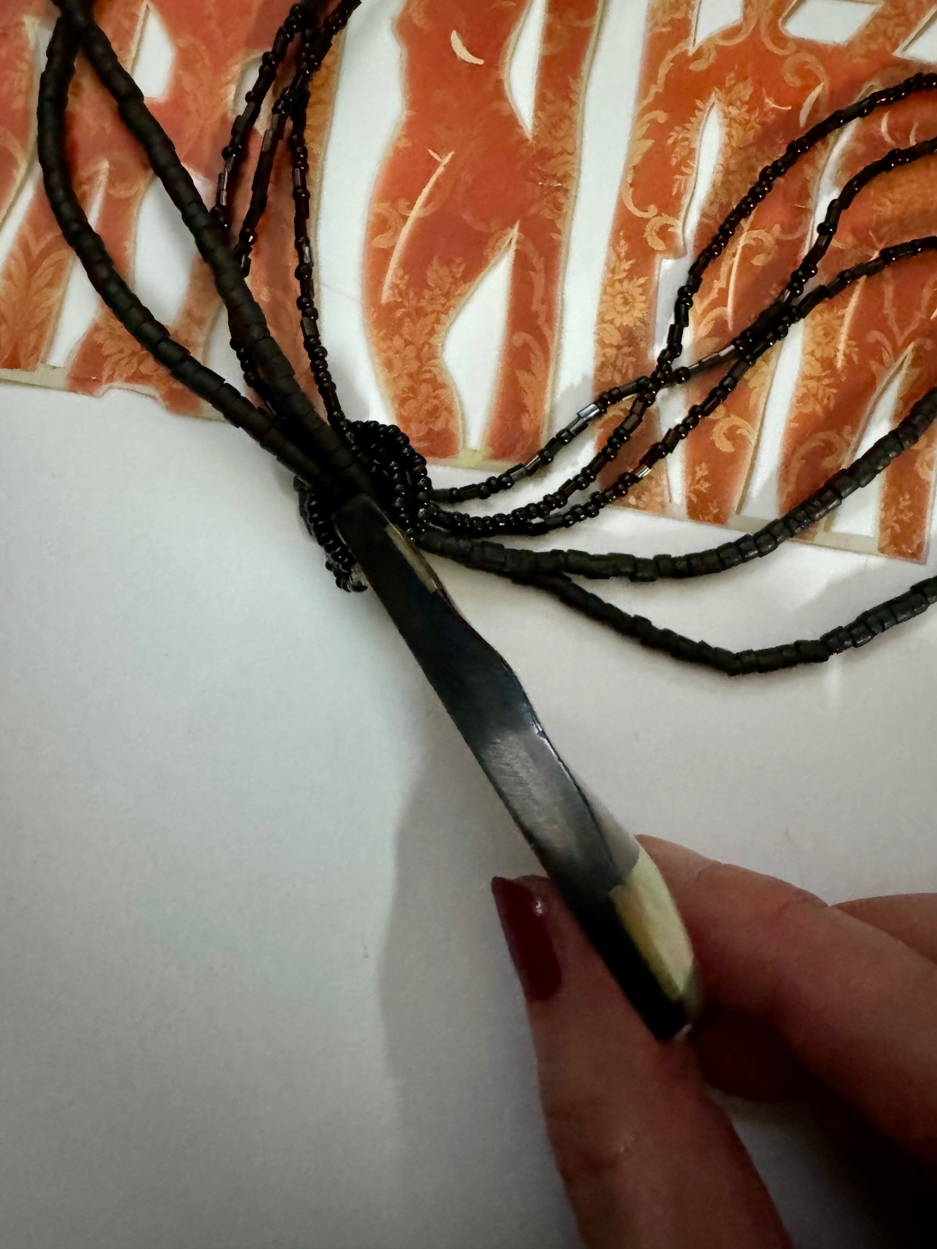 ビーズは大小の、マットと光沢のパーツによる 5連です。
