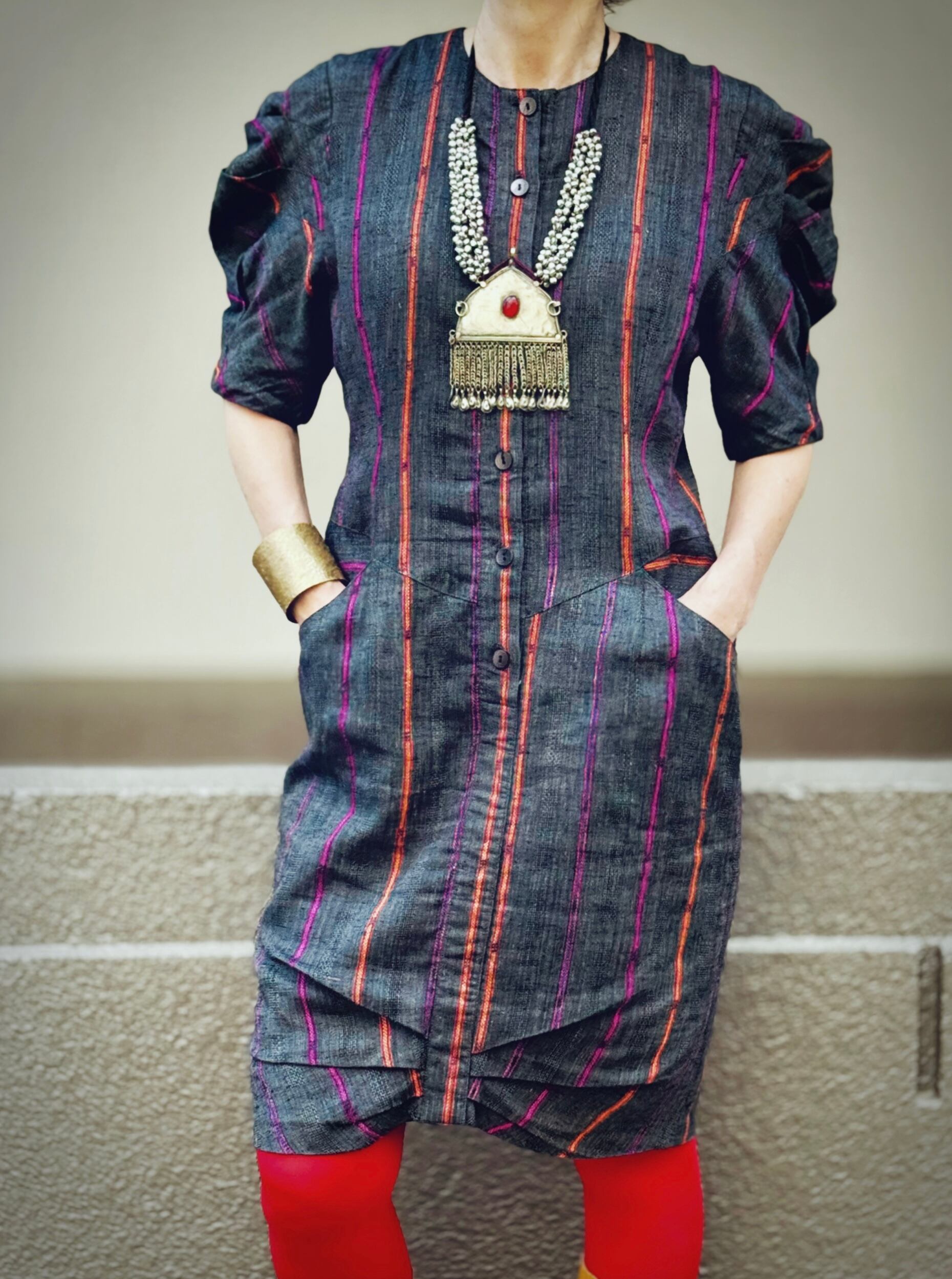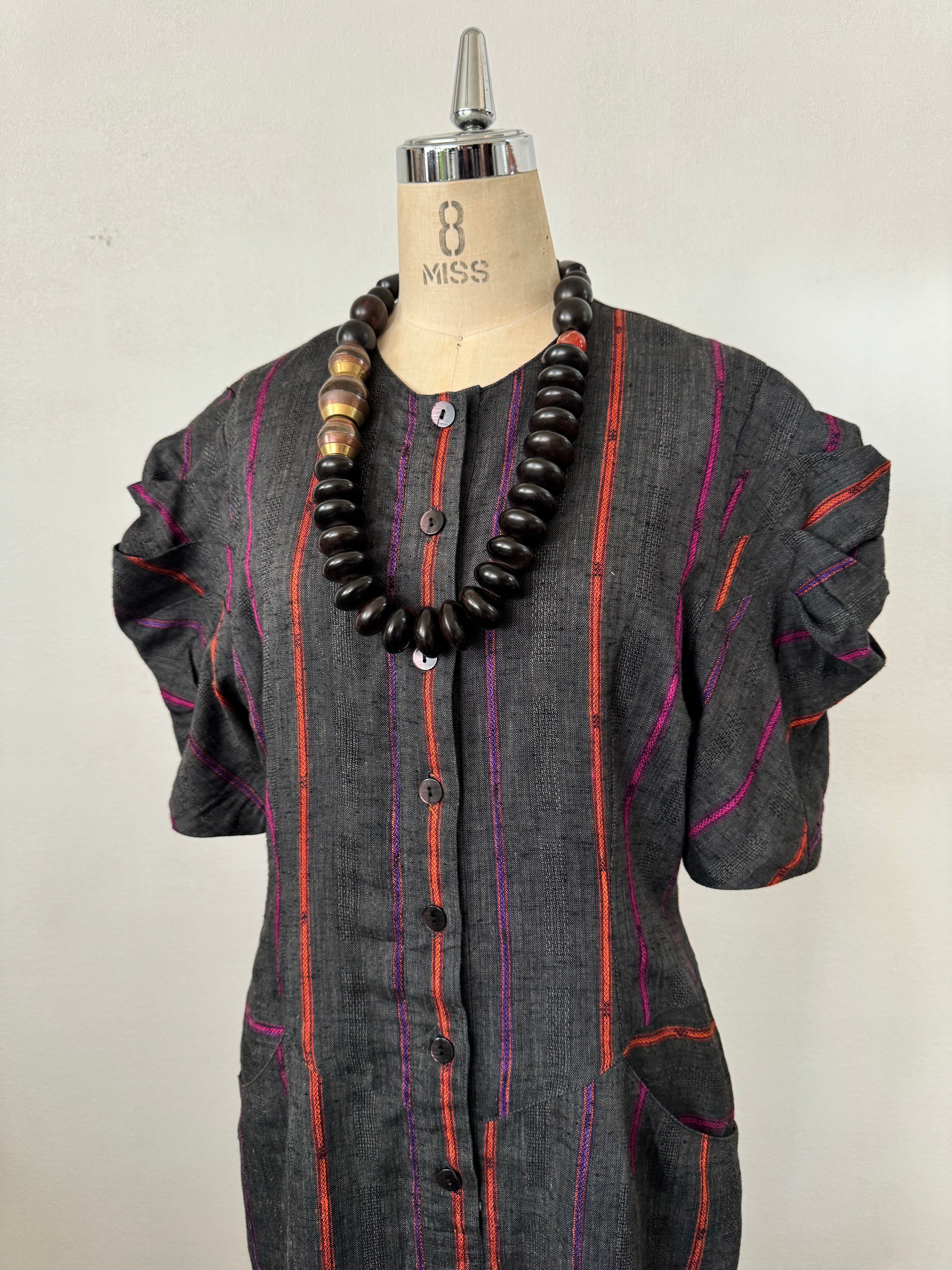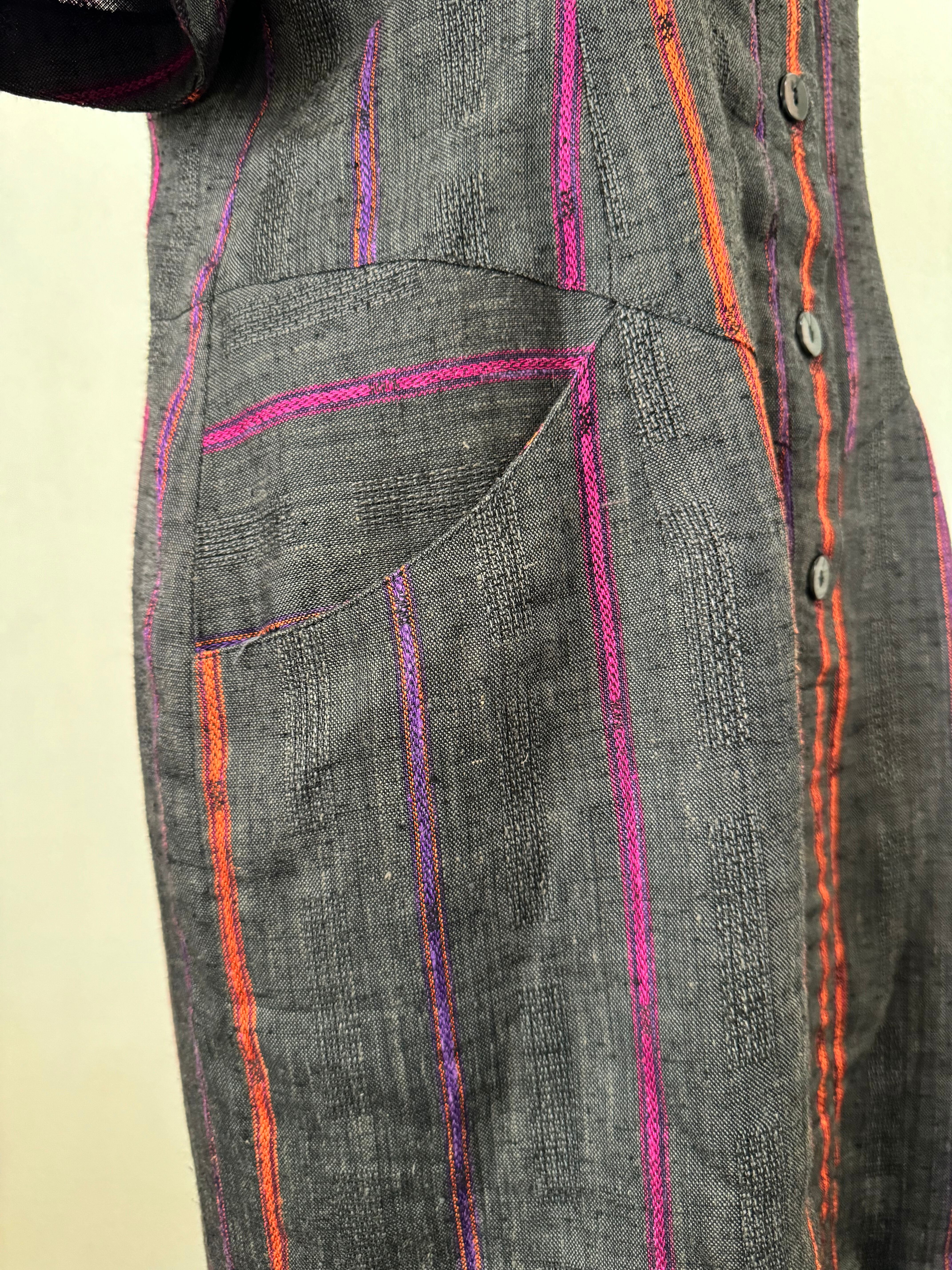 ヴィンテージならではの、非常にディテールの凝ったリネン ドレスです。