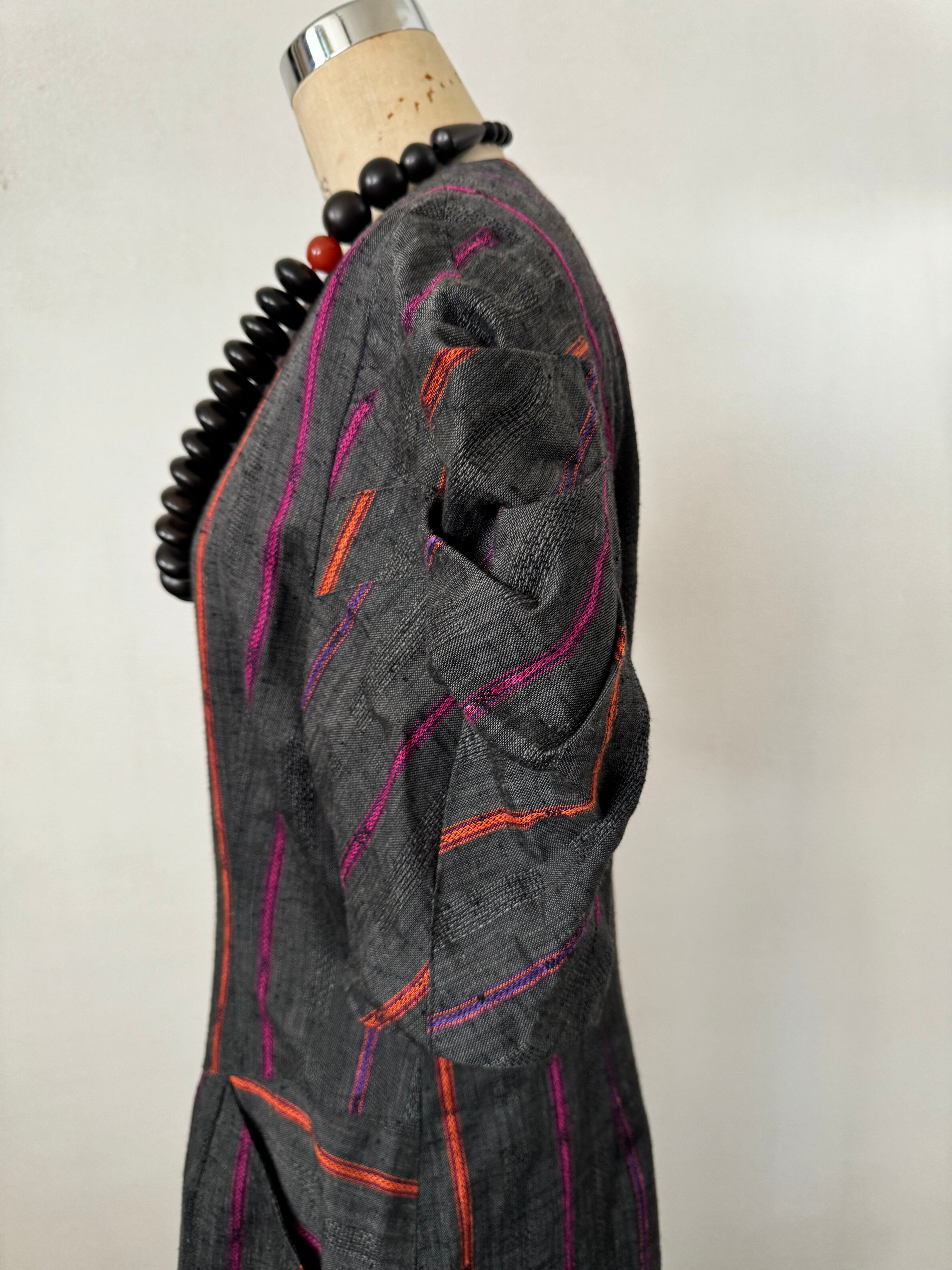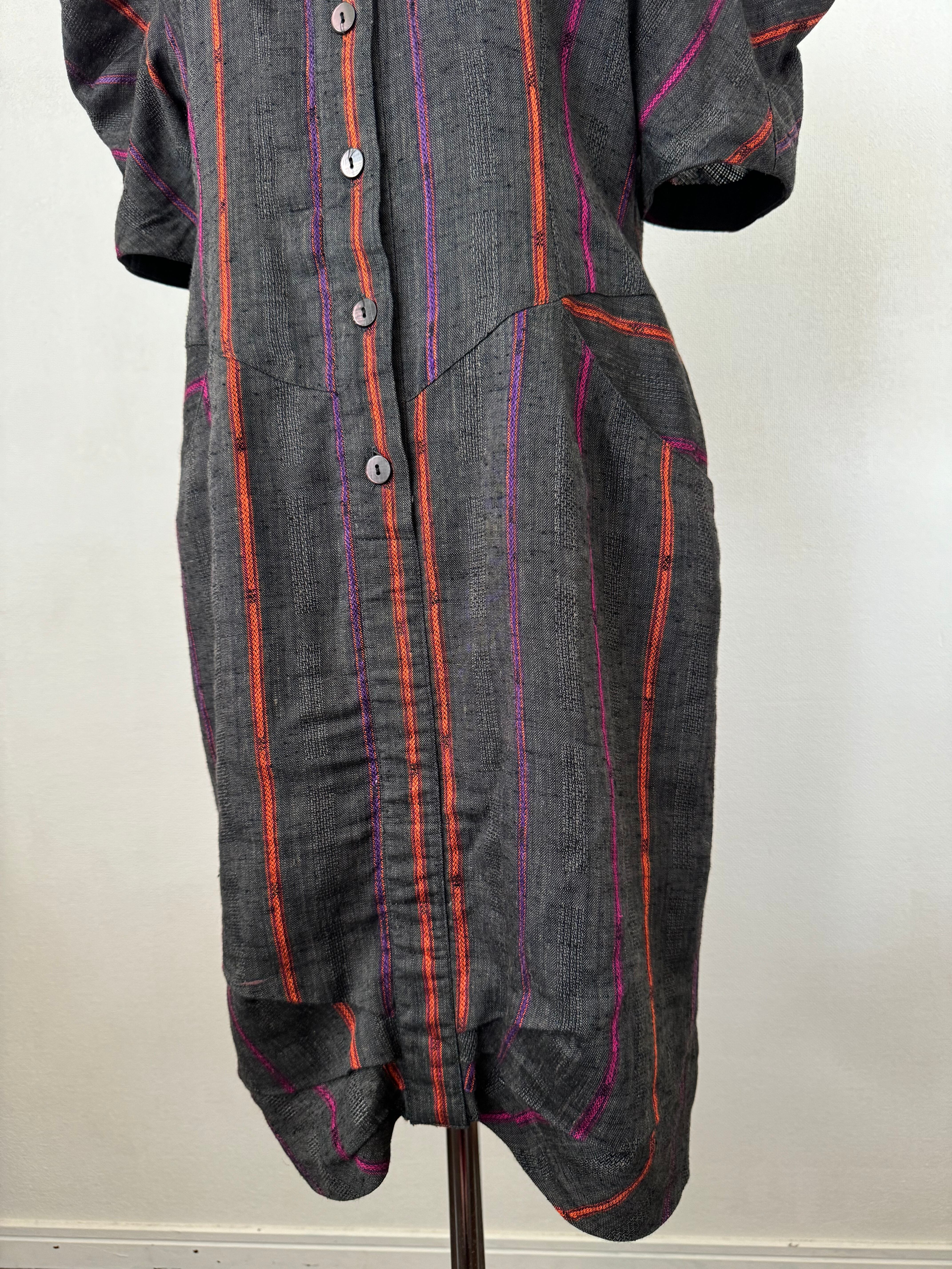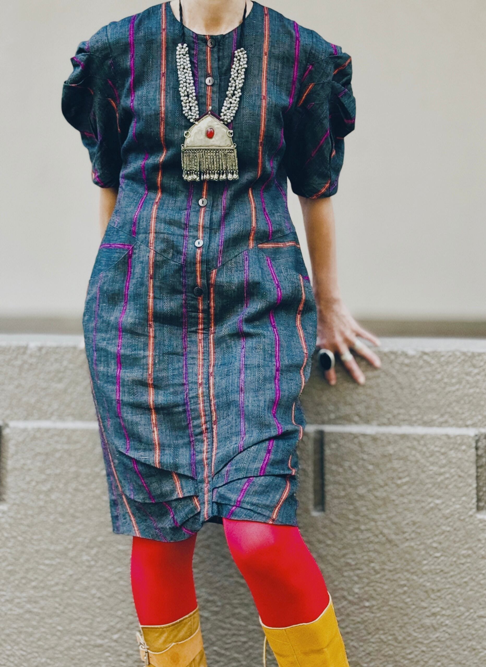ヴィンテージならではの、非常にディテールの凝ったリネン ドレスです。