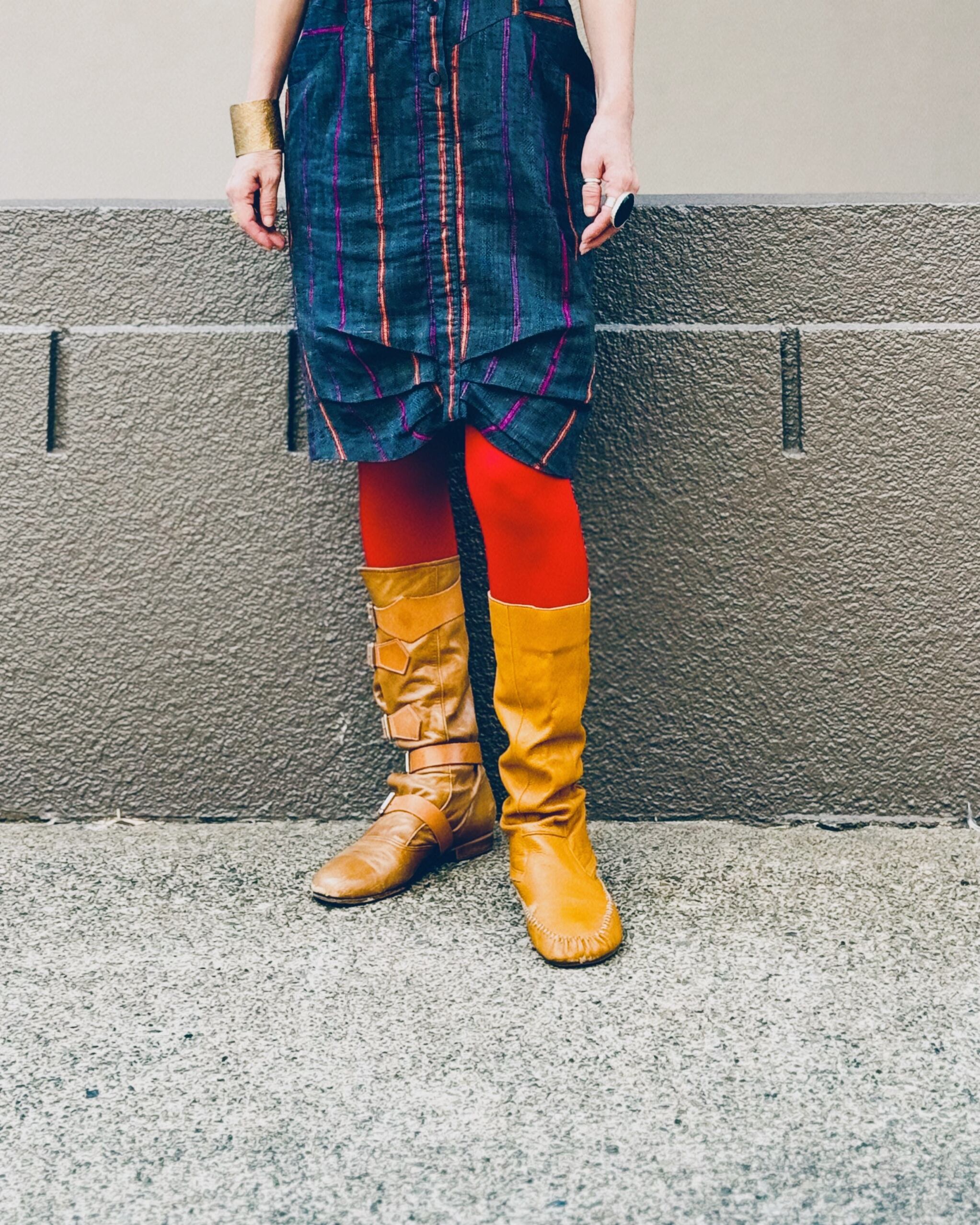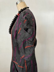 ・チャコール グレー (墨黒)× オレンジ , ビビット ピンクの織りストライプ