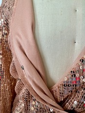肌映りの良いピンク ベージュの色目が素敵で、スパンコールでも柔らかい印象です。