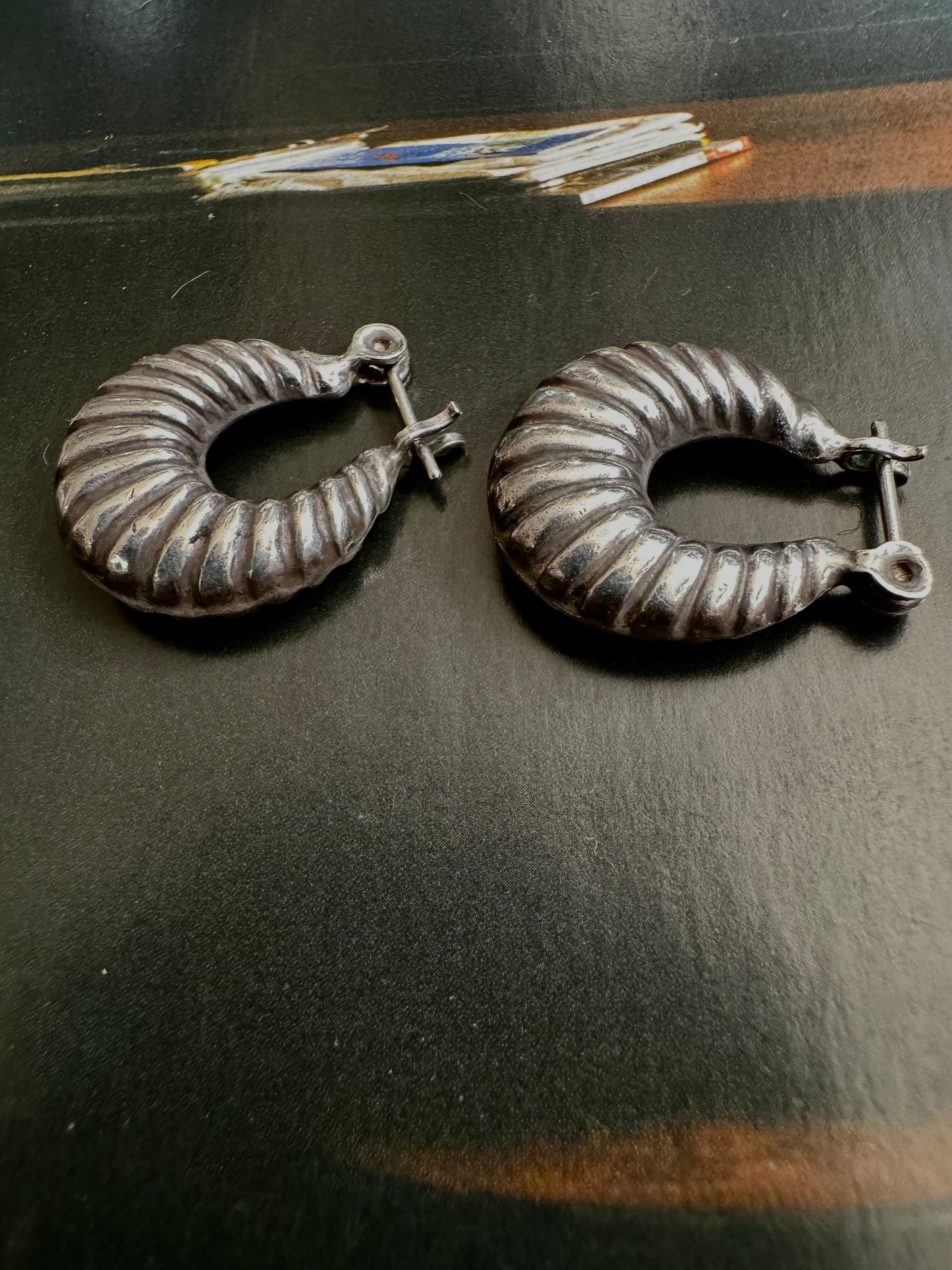 ぷっくりと厚みがあり、シャープでいて柔らかい印象のフープ ピアスです。