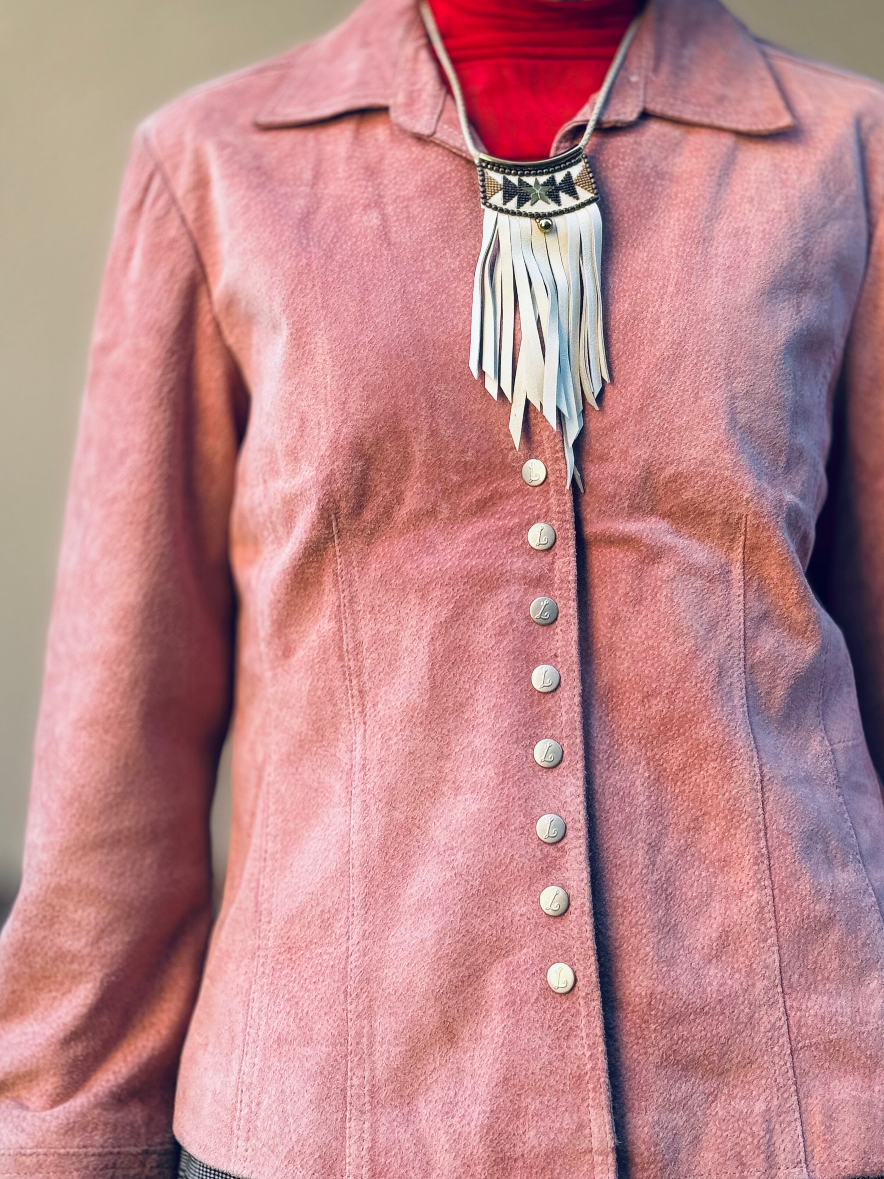 ニュアンス ピンクが珍しいリアル スエードのジャケットです。