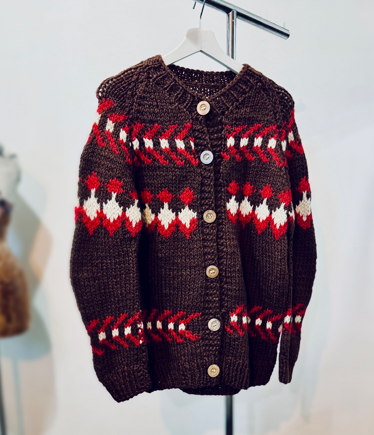 フレンチ ヴィンテージ ハンドメイド ジャガード チャンキー ニット カーディガン