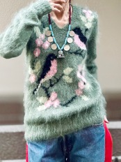 ユーロ ヴィンテージ ハンドメイド ロングヘア モヘア インターシャ ニット