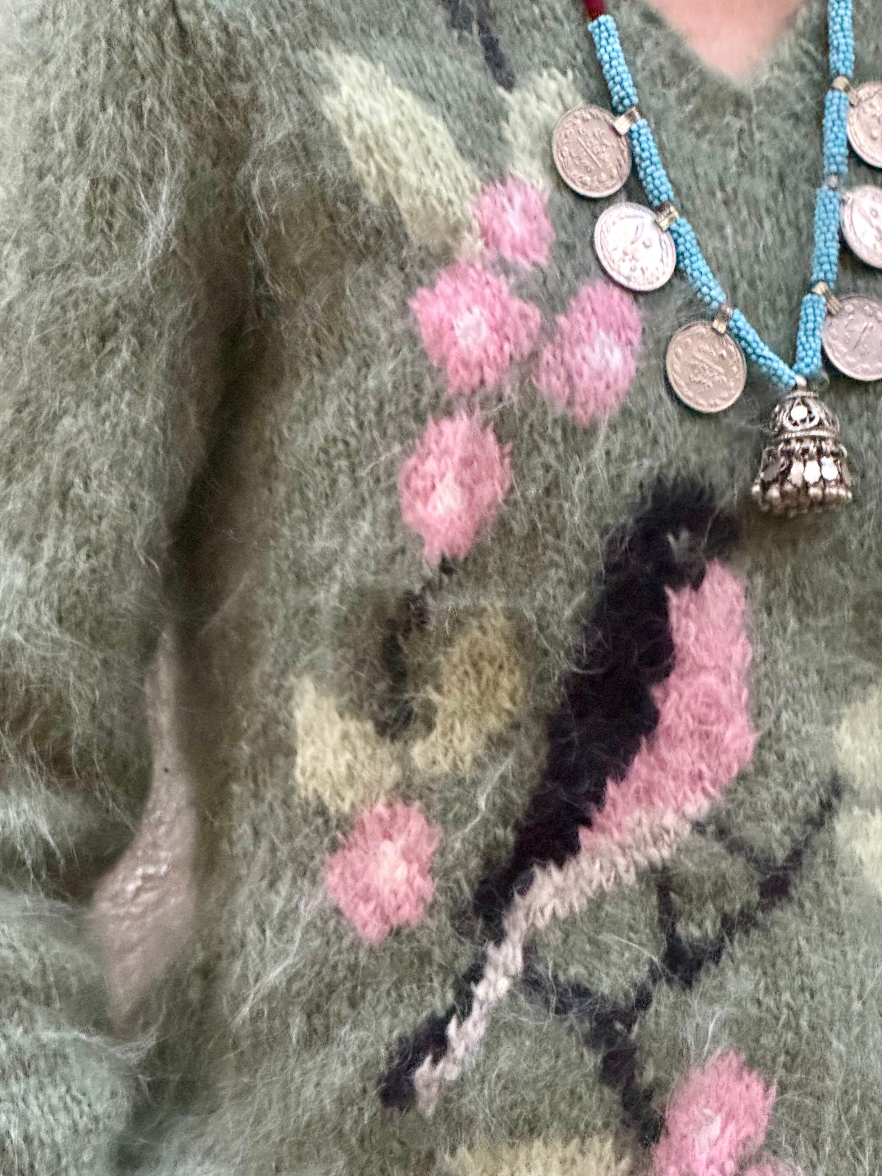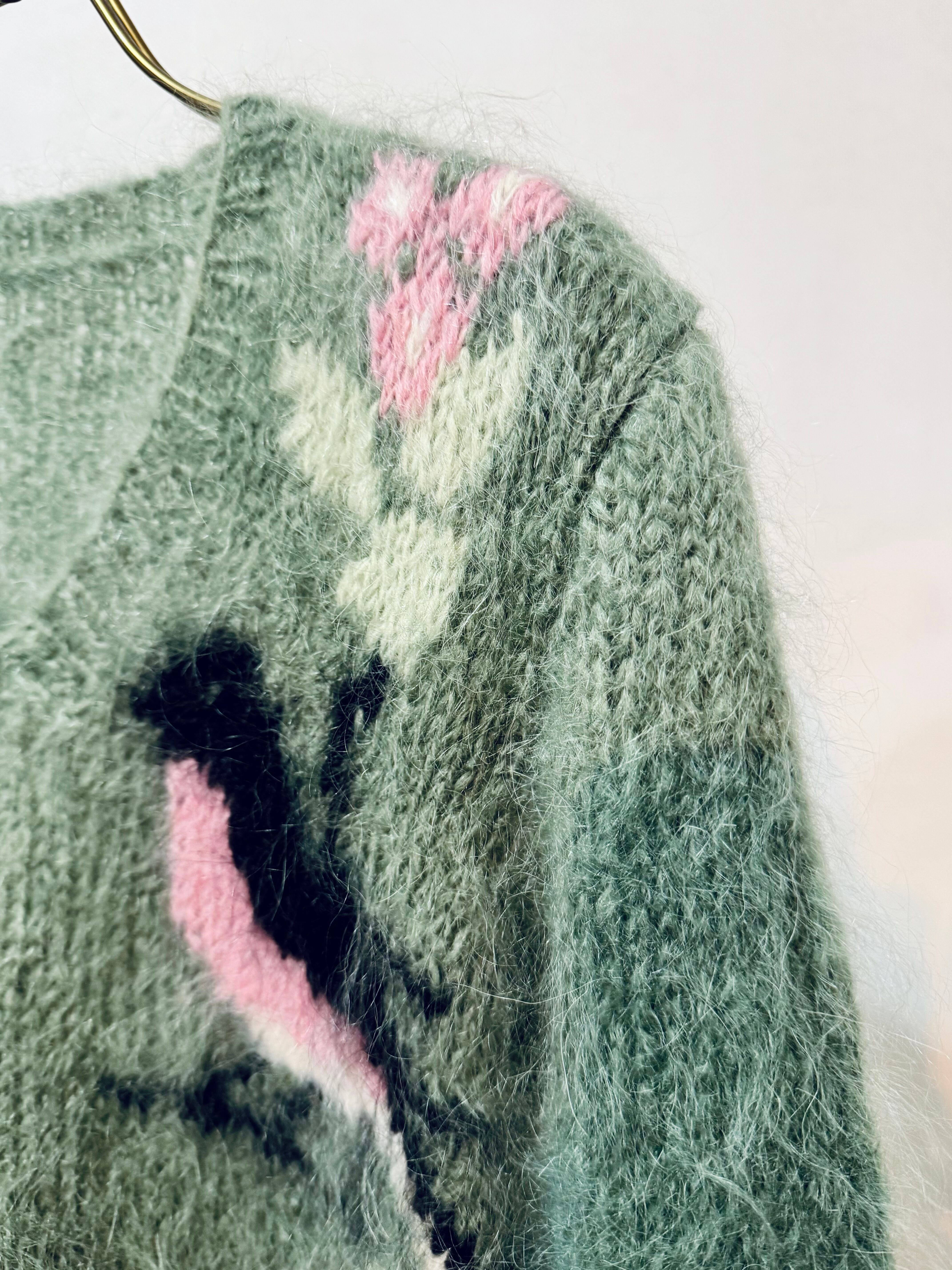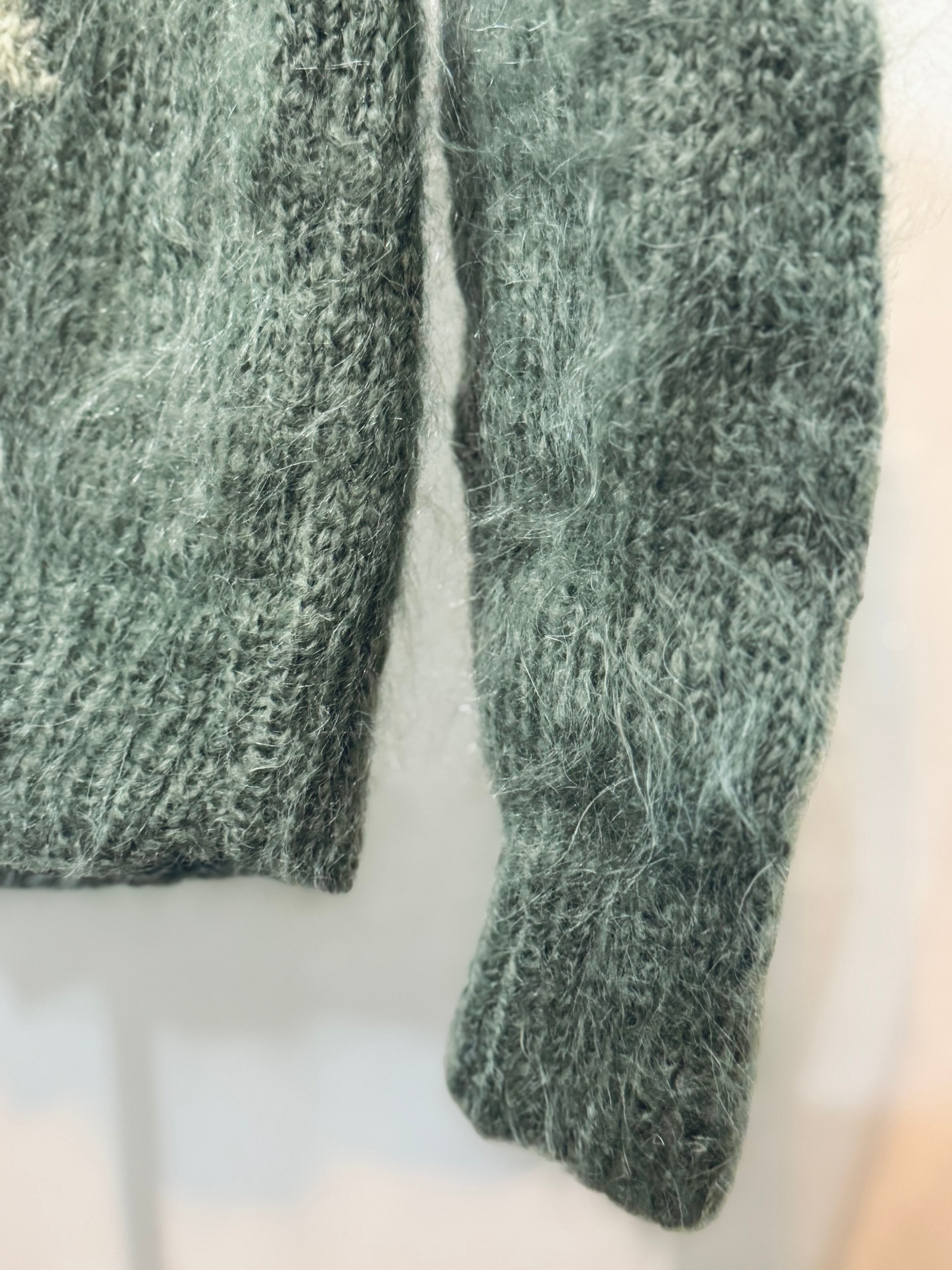 Euro vintage Handmade Long hair mohair intarsiare Knit