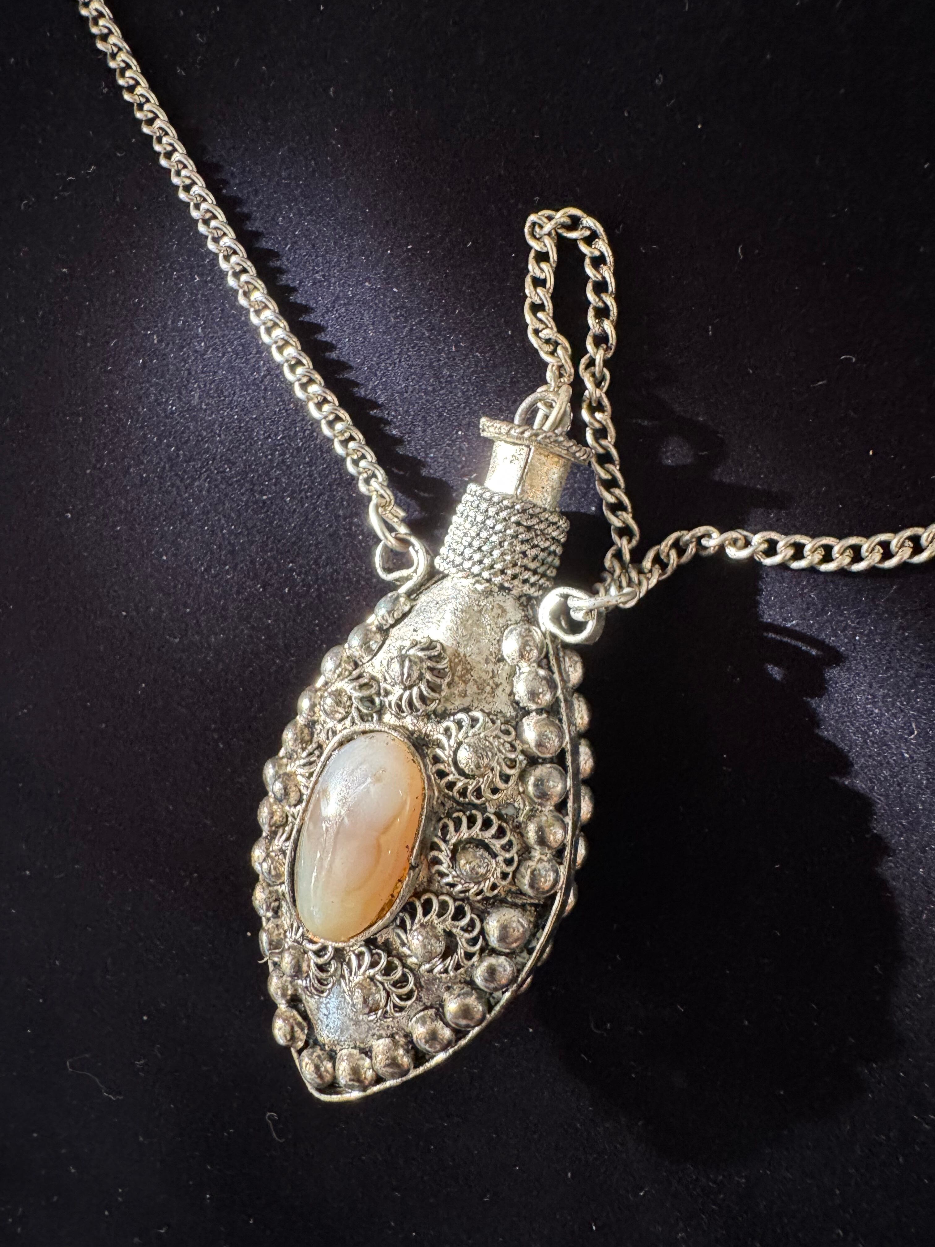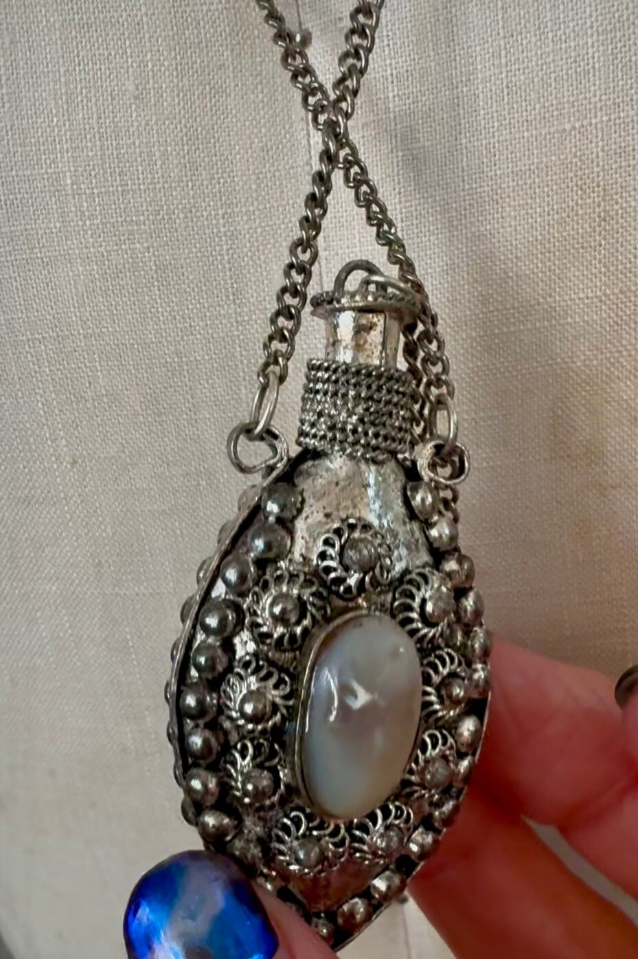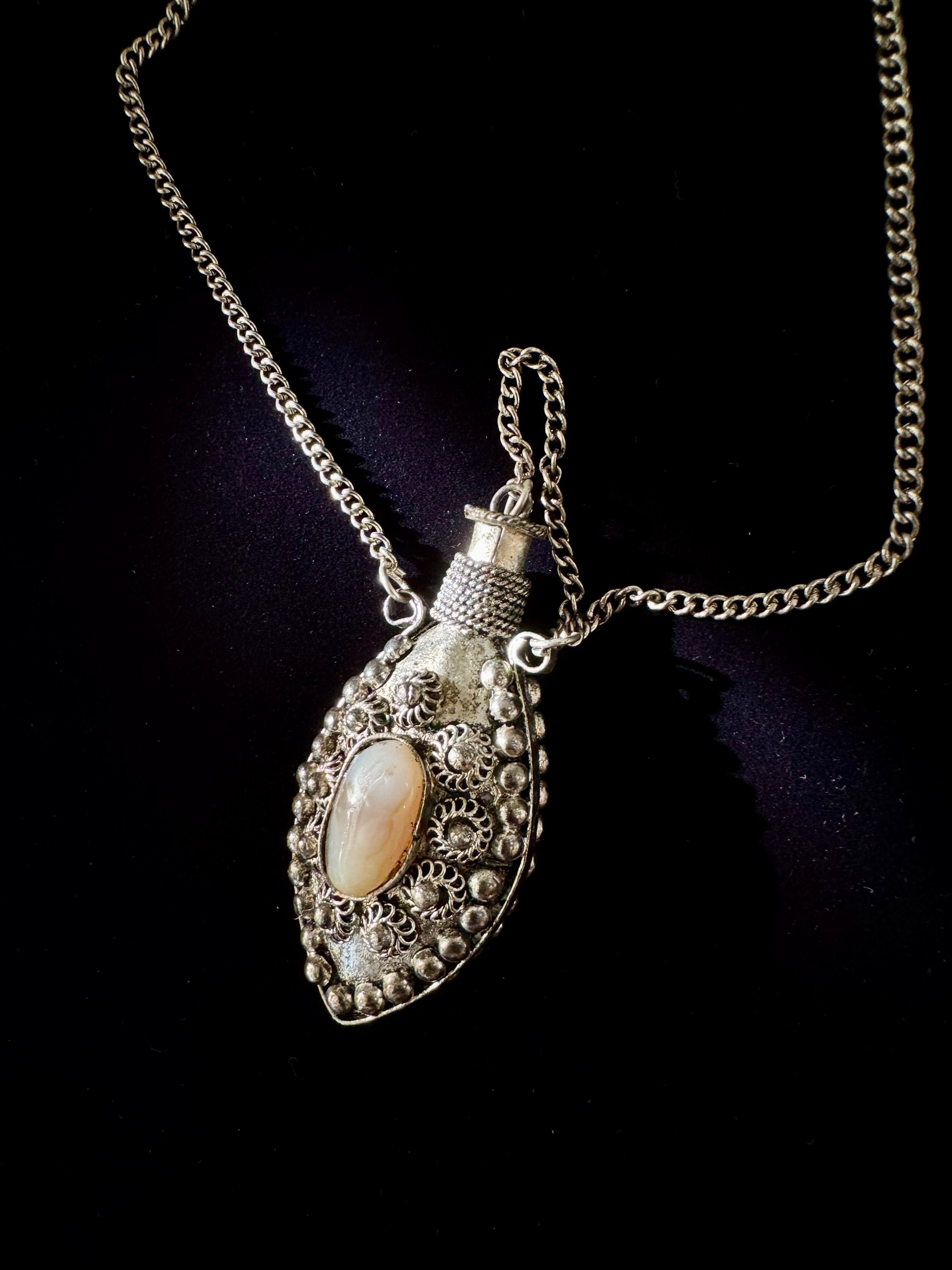 1930s art nouveau Perfume bottle Long Necklace, Moon stone x Agate