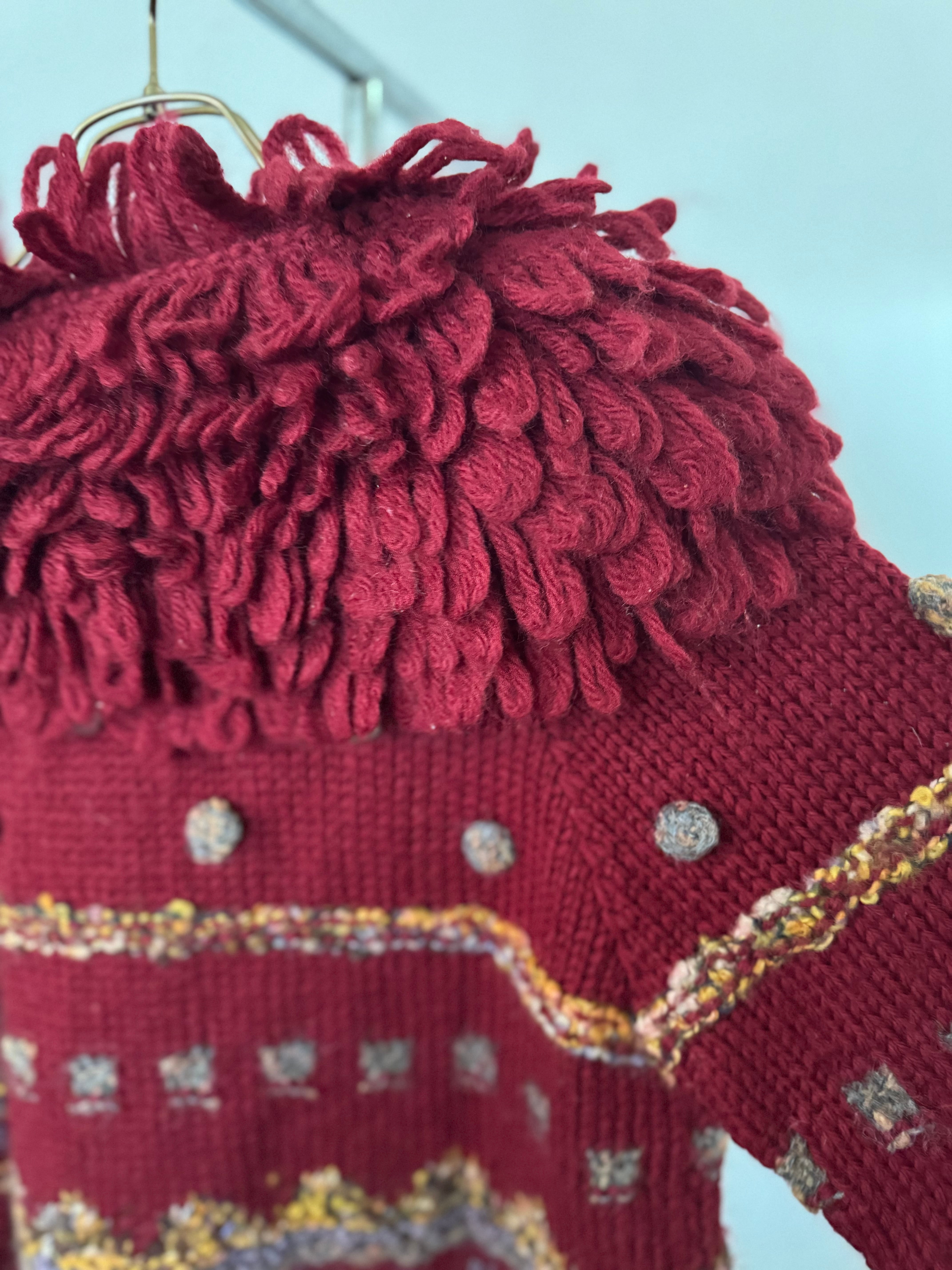 Italy vintage Handmade Loop shaggy , popcorn , Chunky Knit cardigan