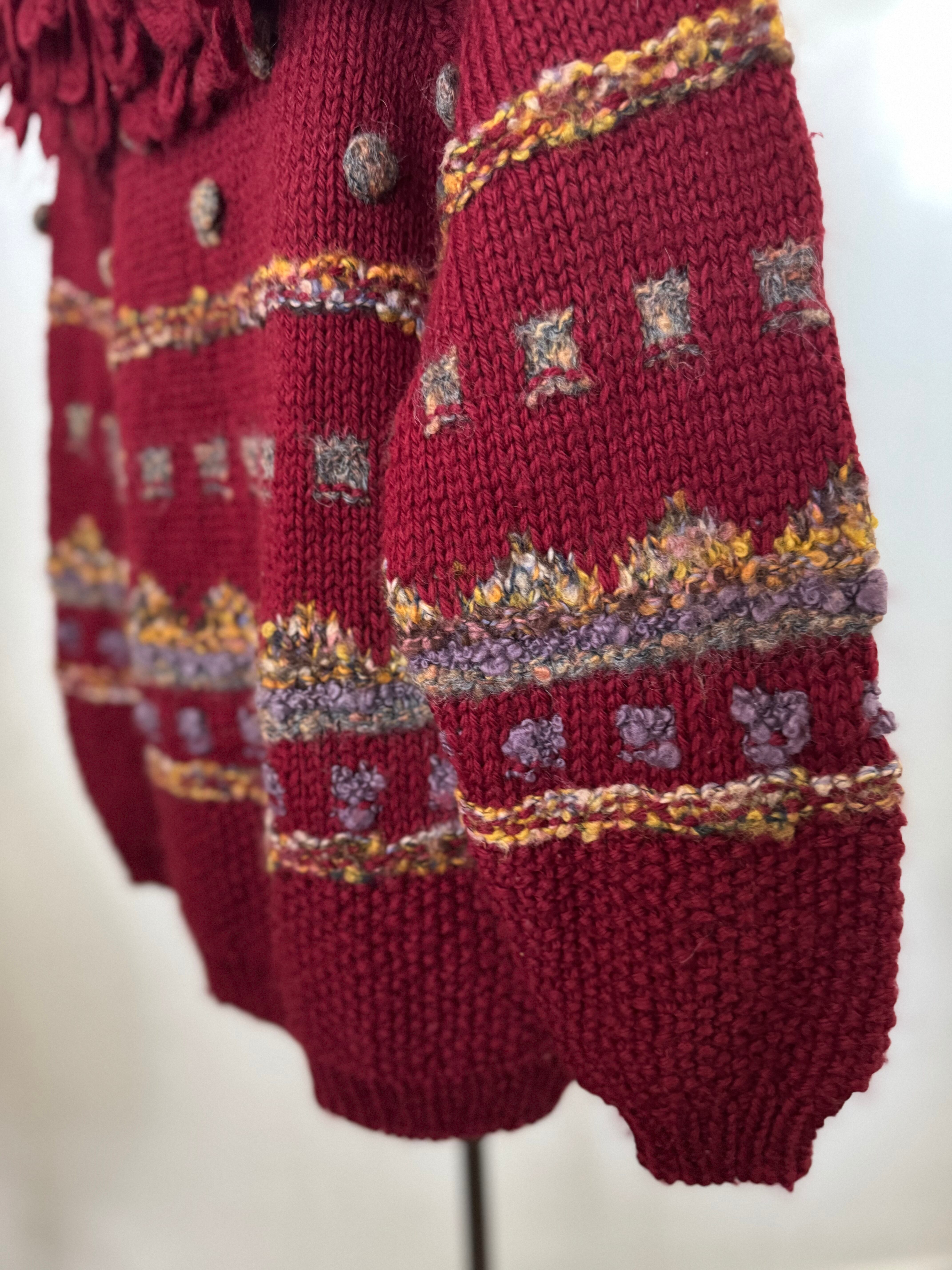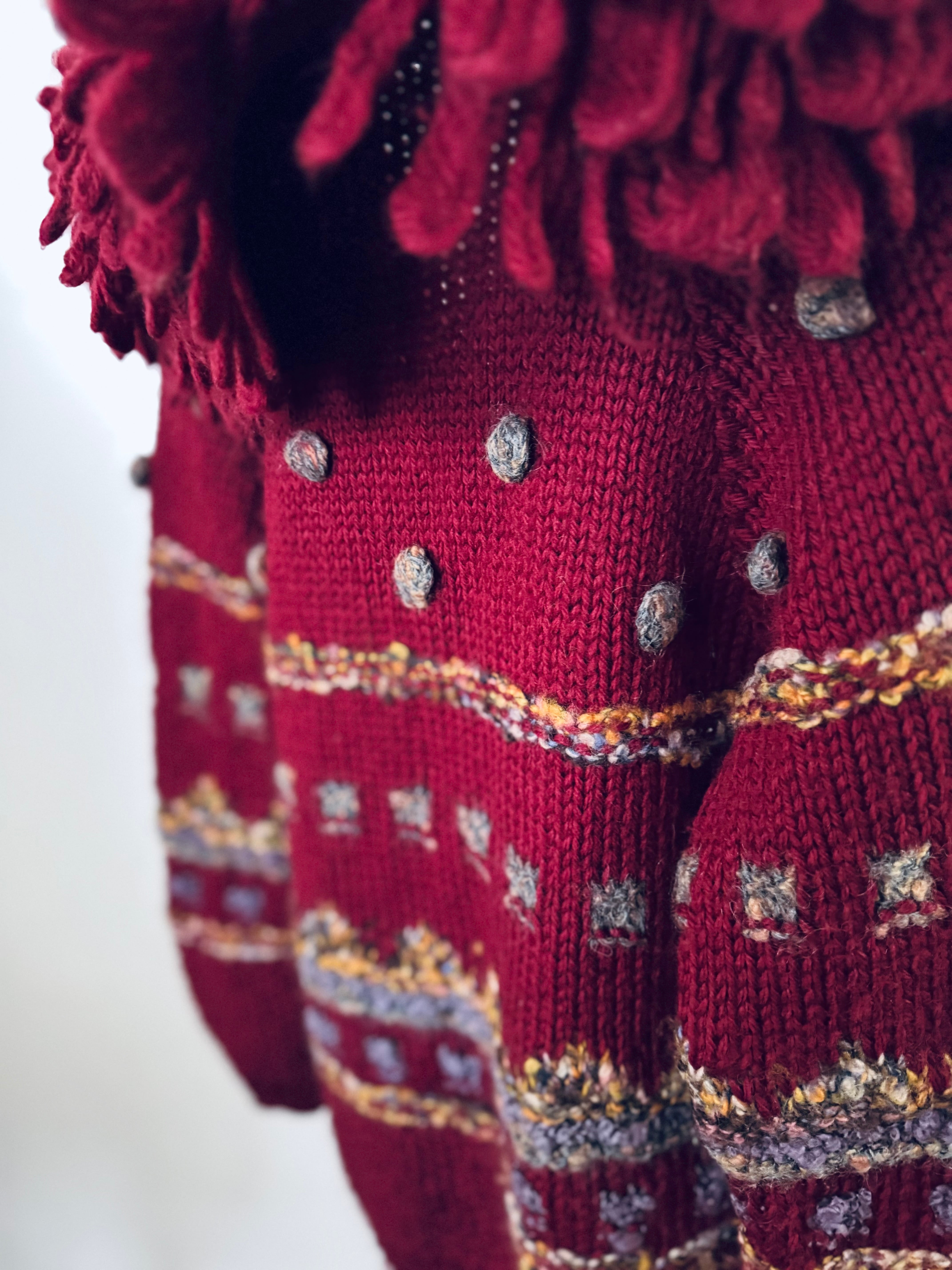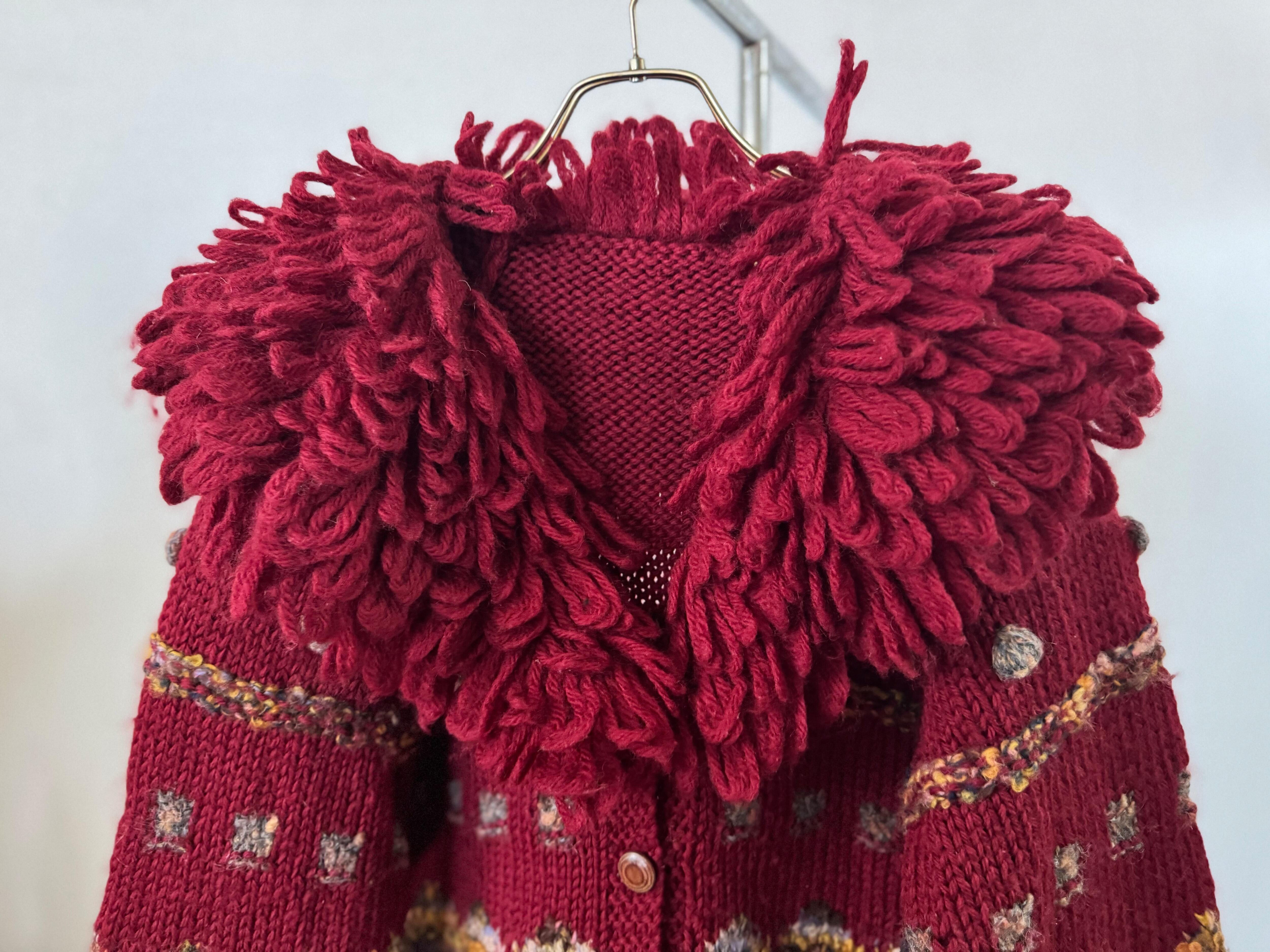 イタリー ヴィンテージ ハンドメイド ループ シャギー , ポップコーン , チャンキー ニット カーディガン