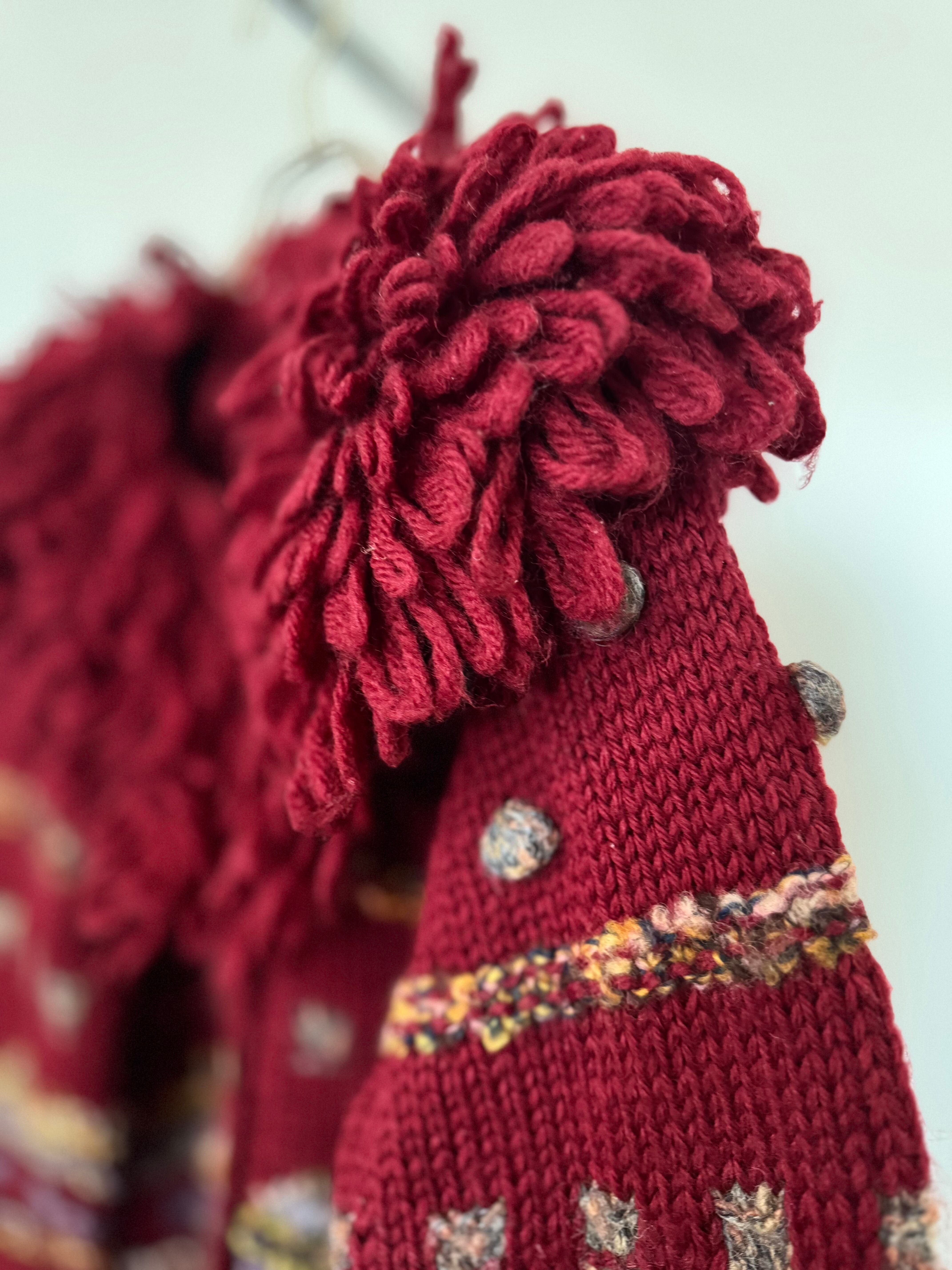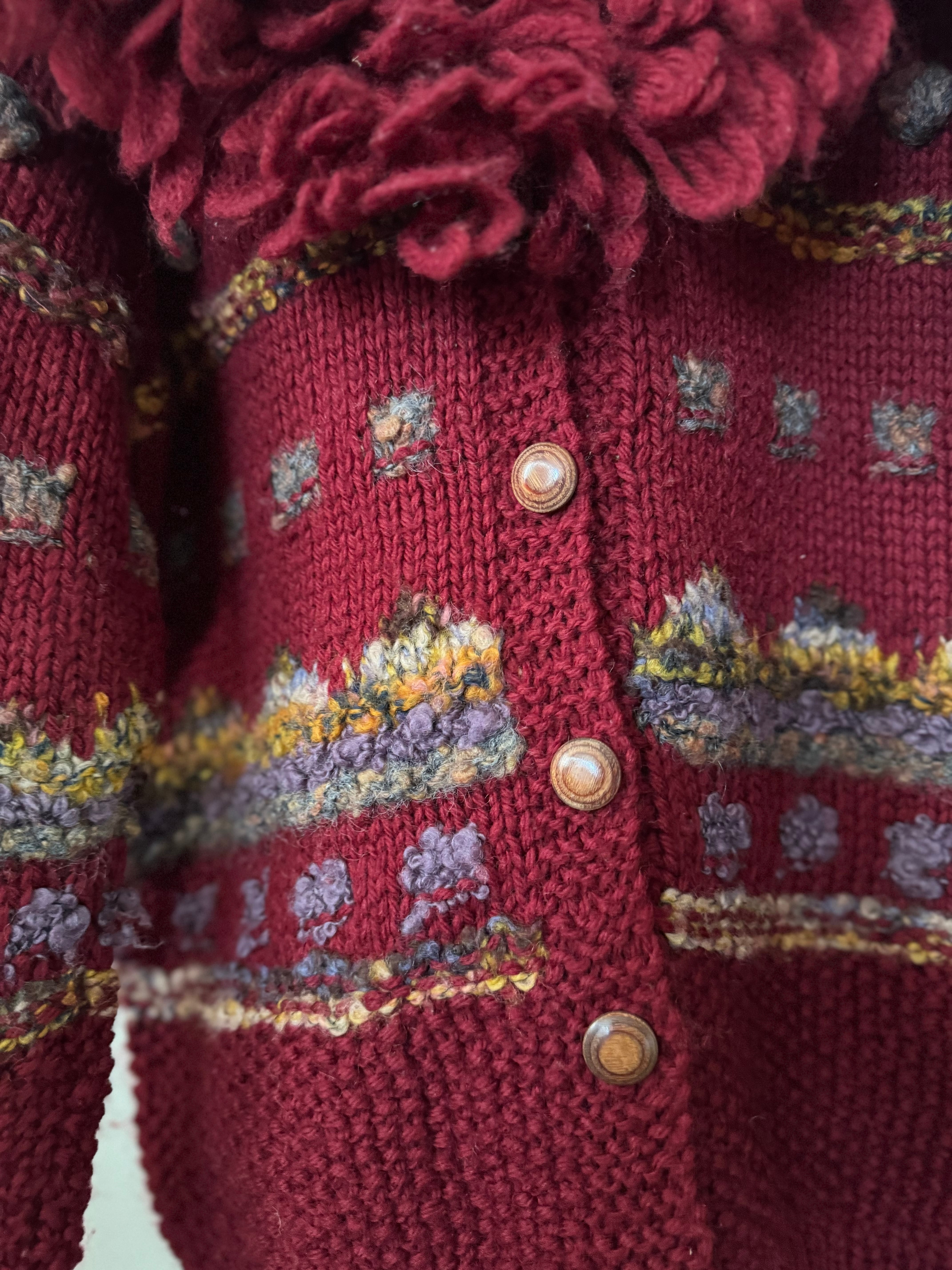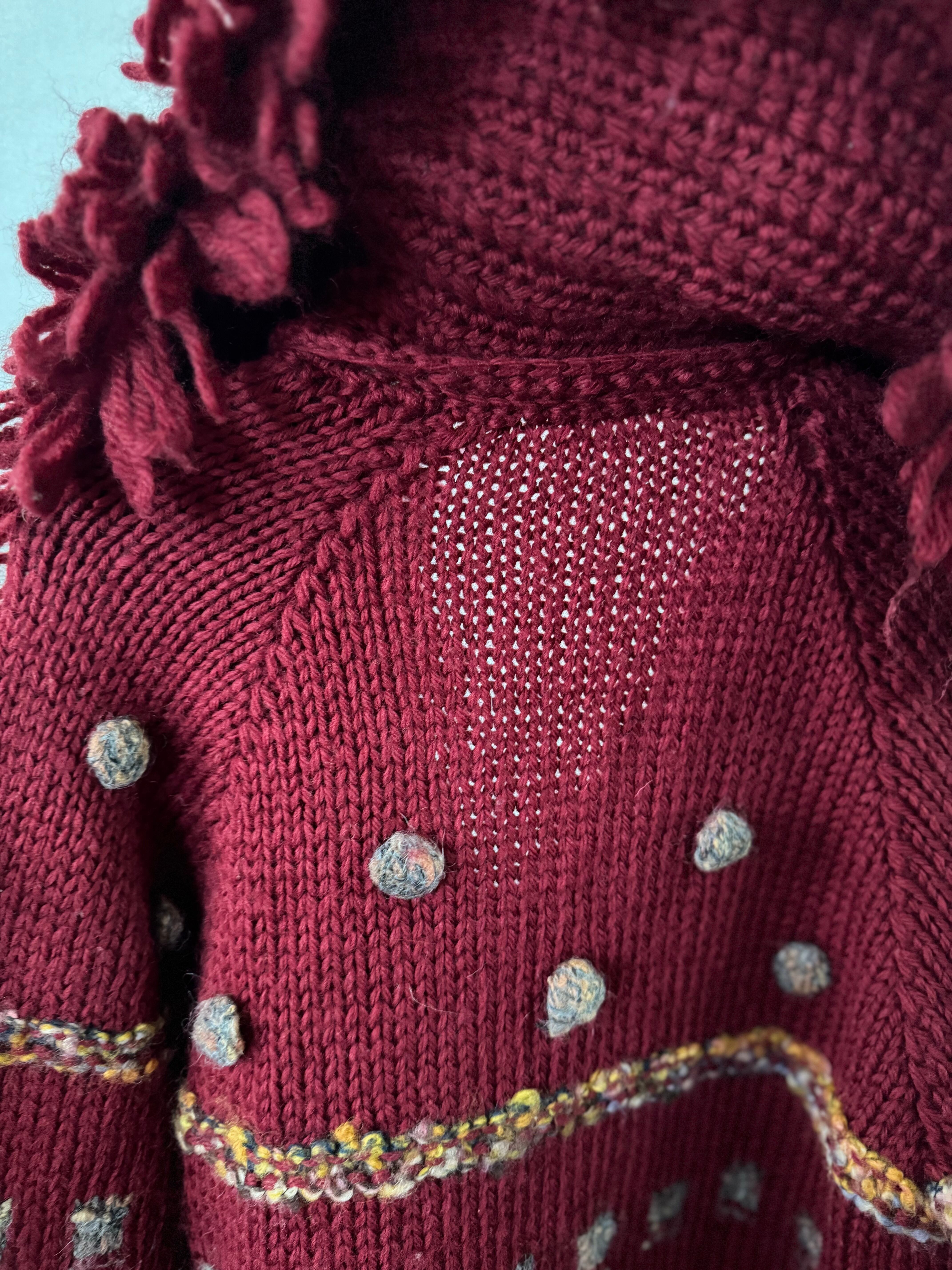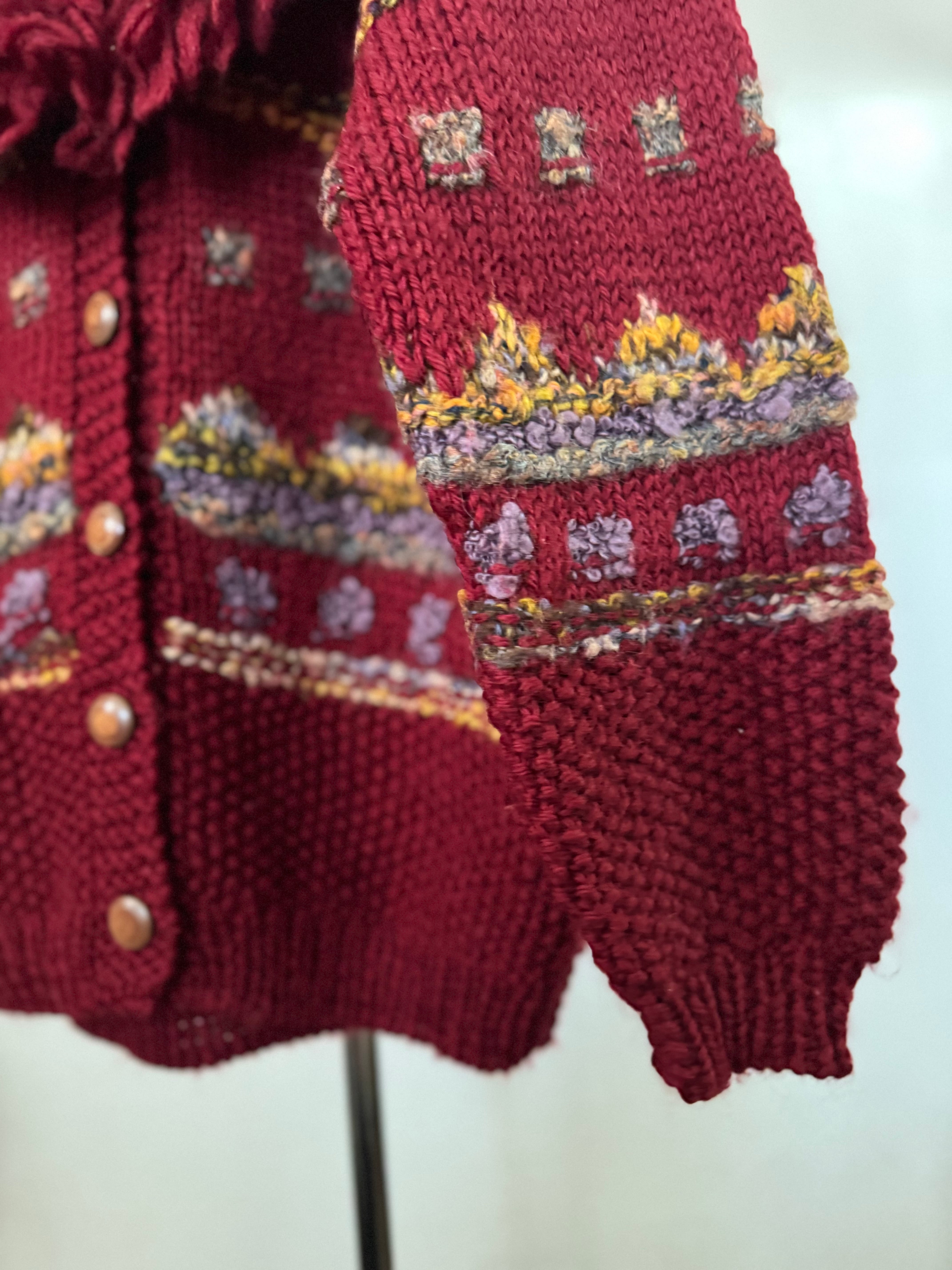 イタリー ヴィンテージ ハンドメイド ループ シャギー , ポップコーン , チャンキー ニット カーディガン
