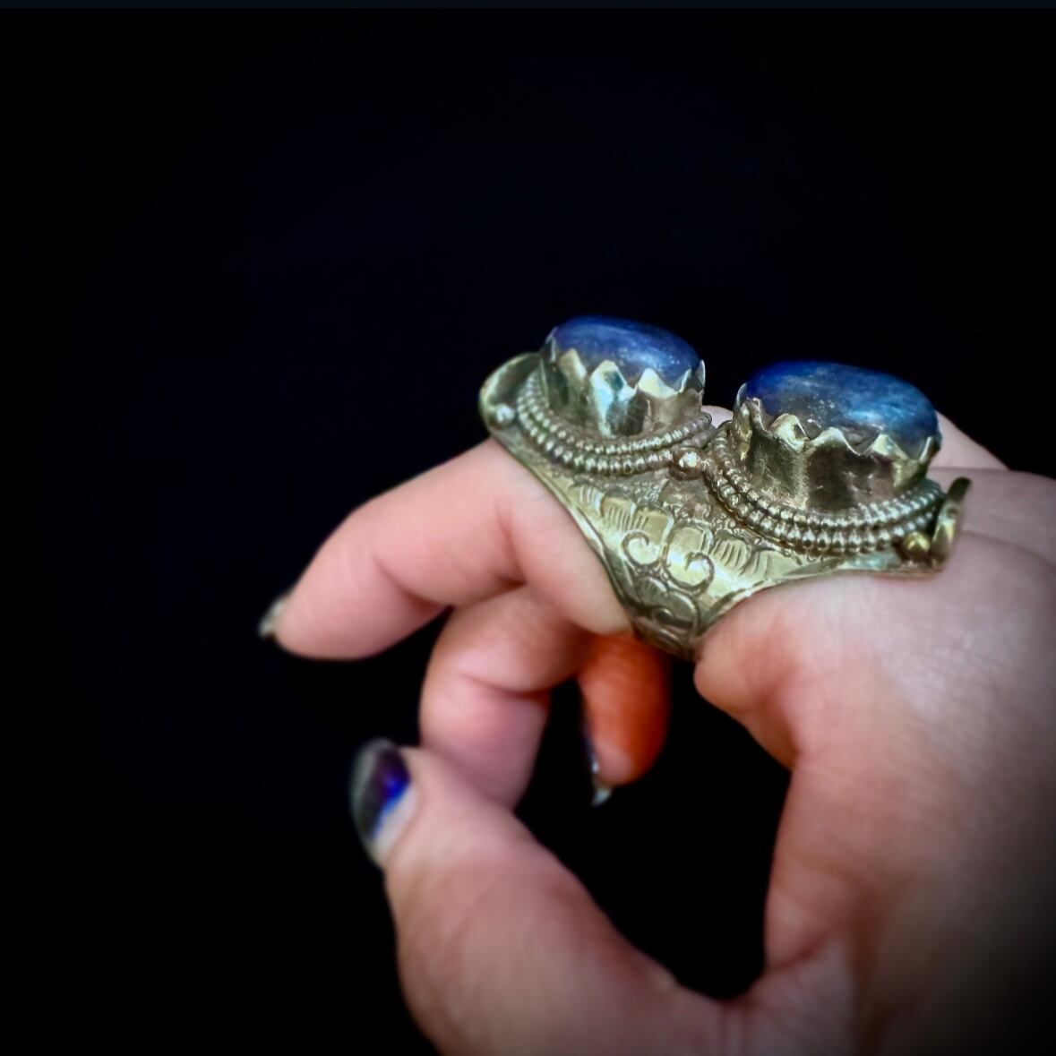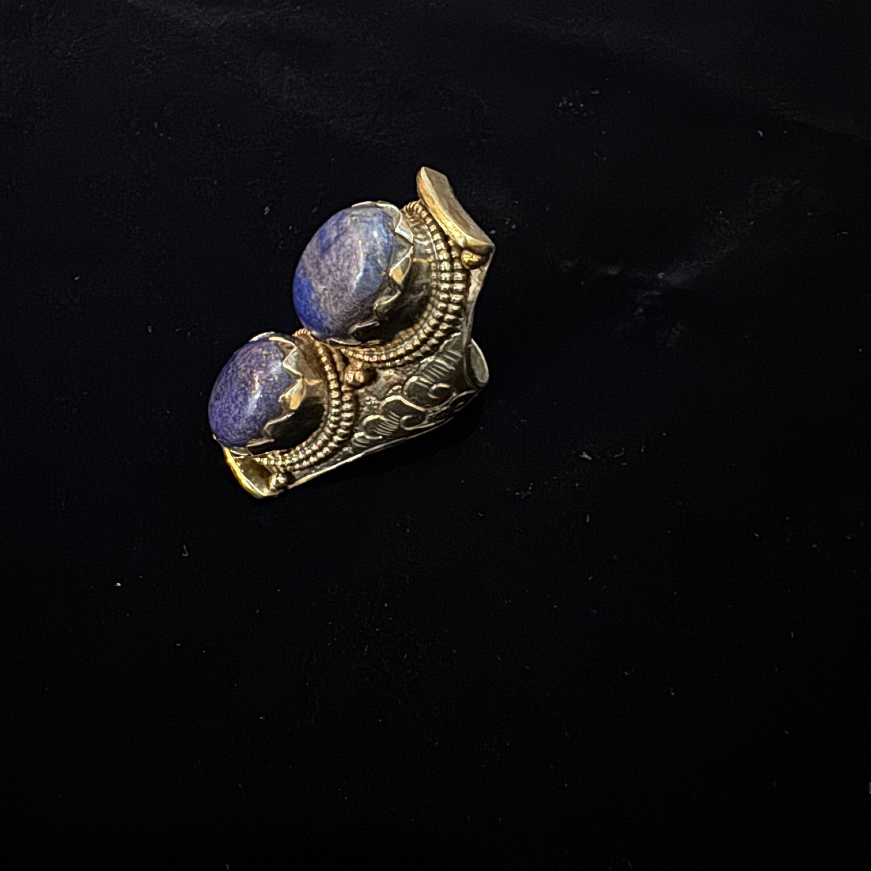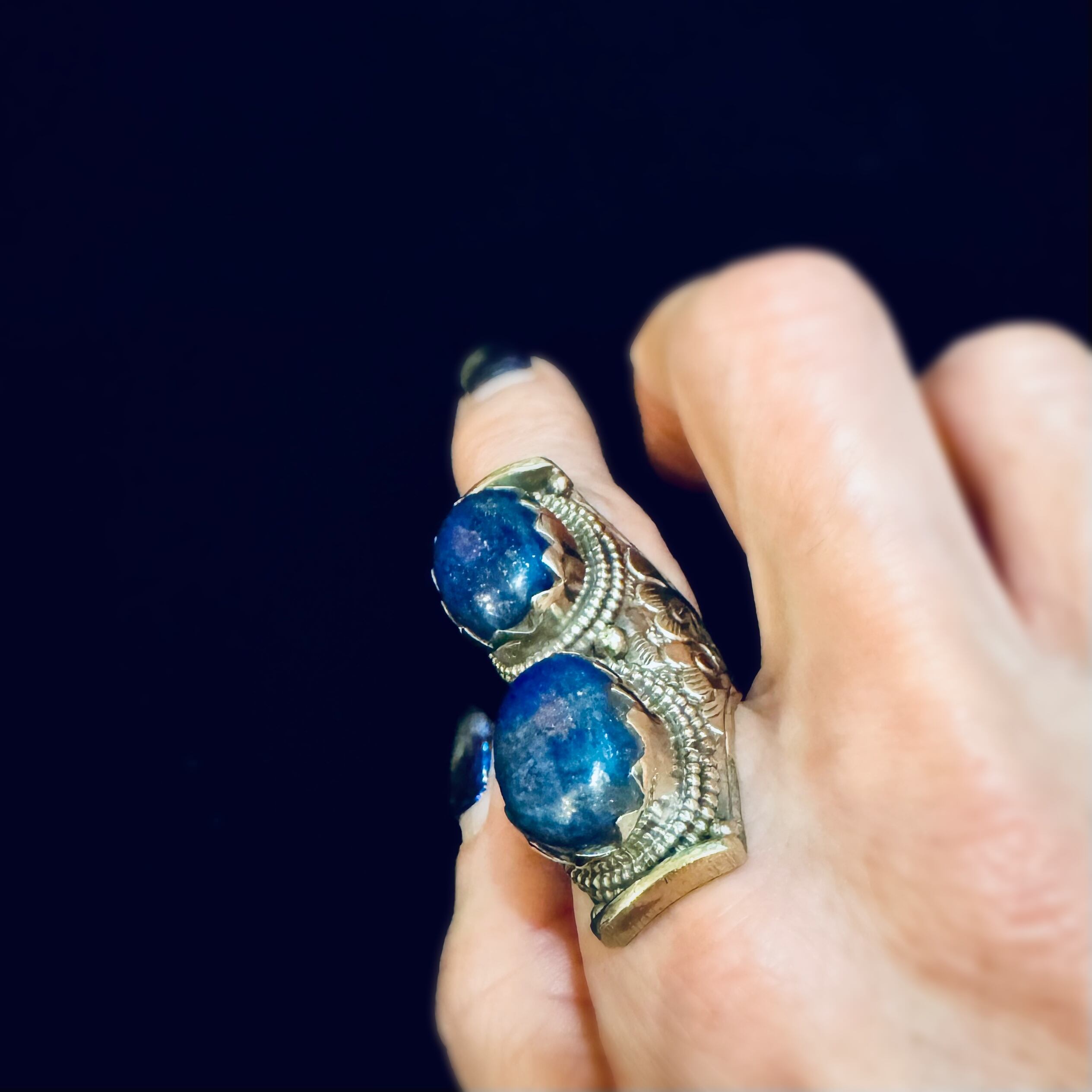 厚みも大きさもあるラピスラズリを使用し製作されたチャンキー リング