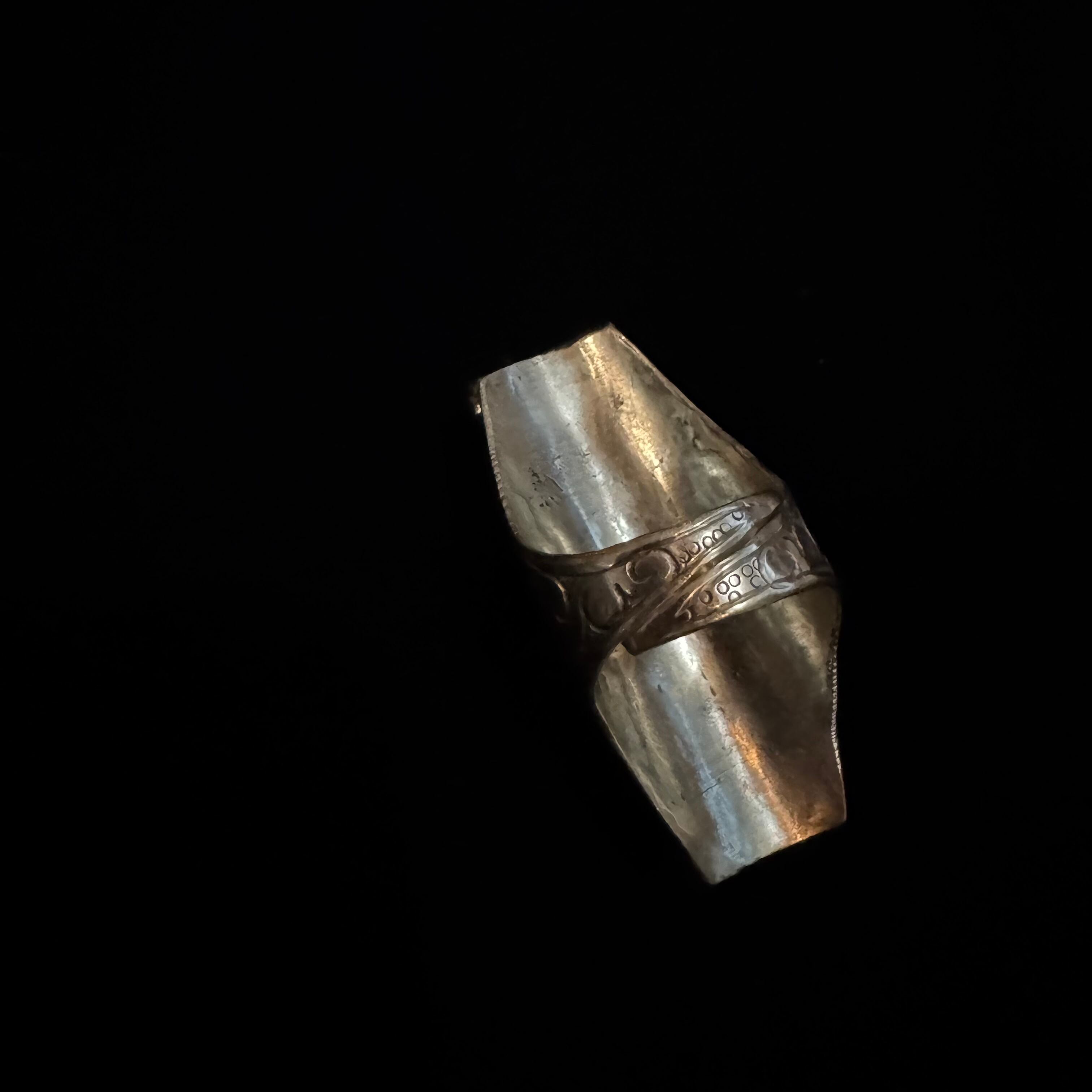 ハンドメイドならではの繊細な手彫りの装飾が施された存在感あるリングです。