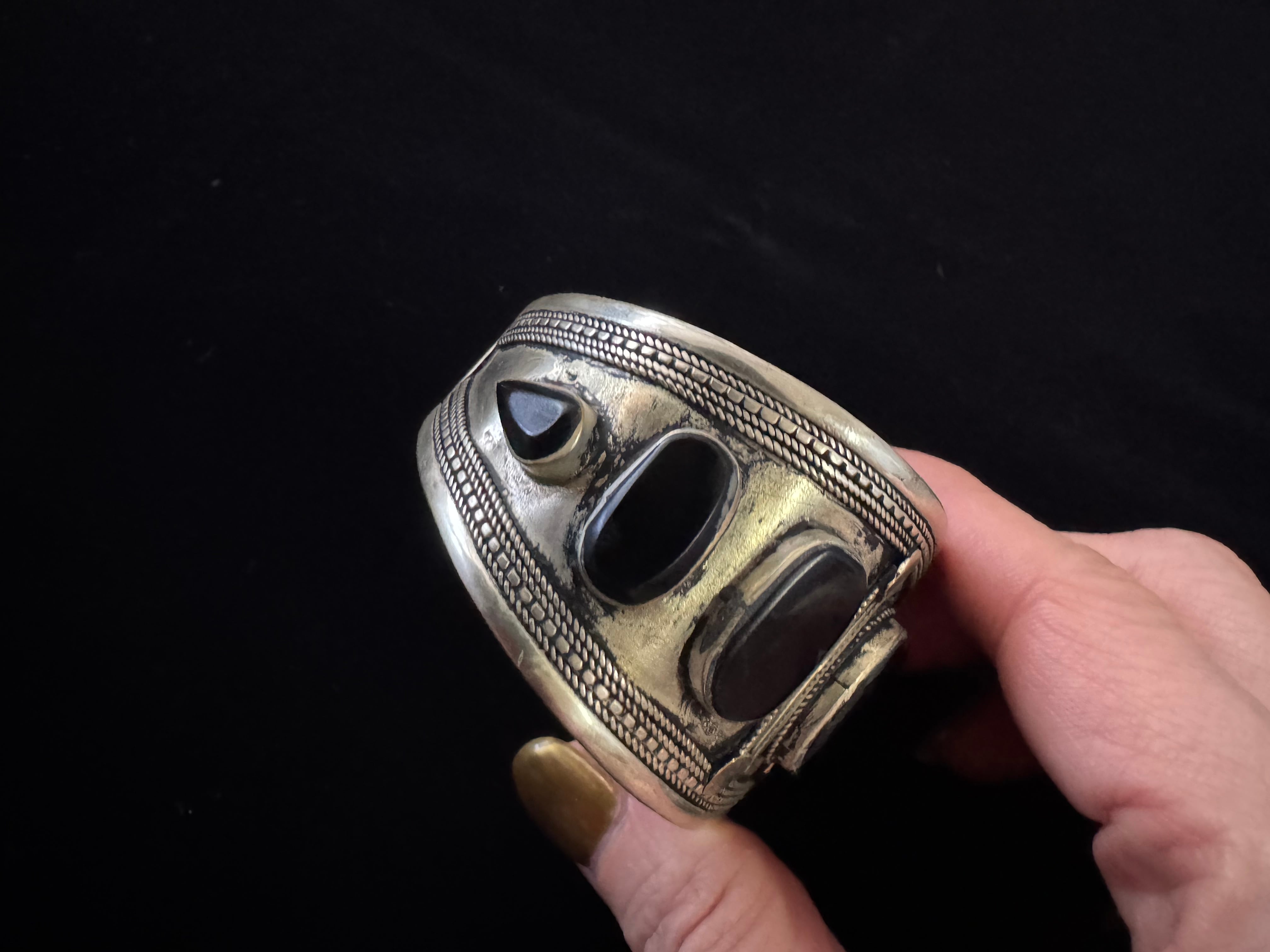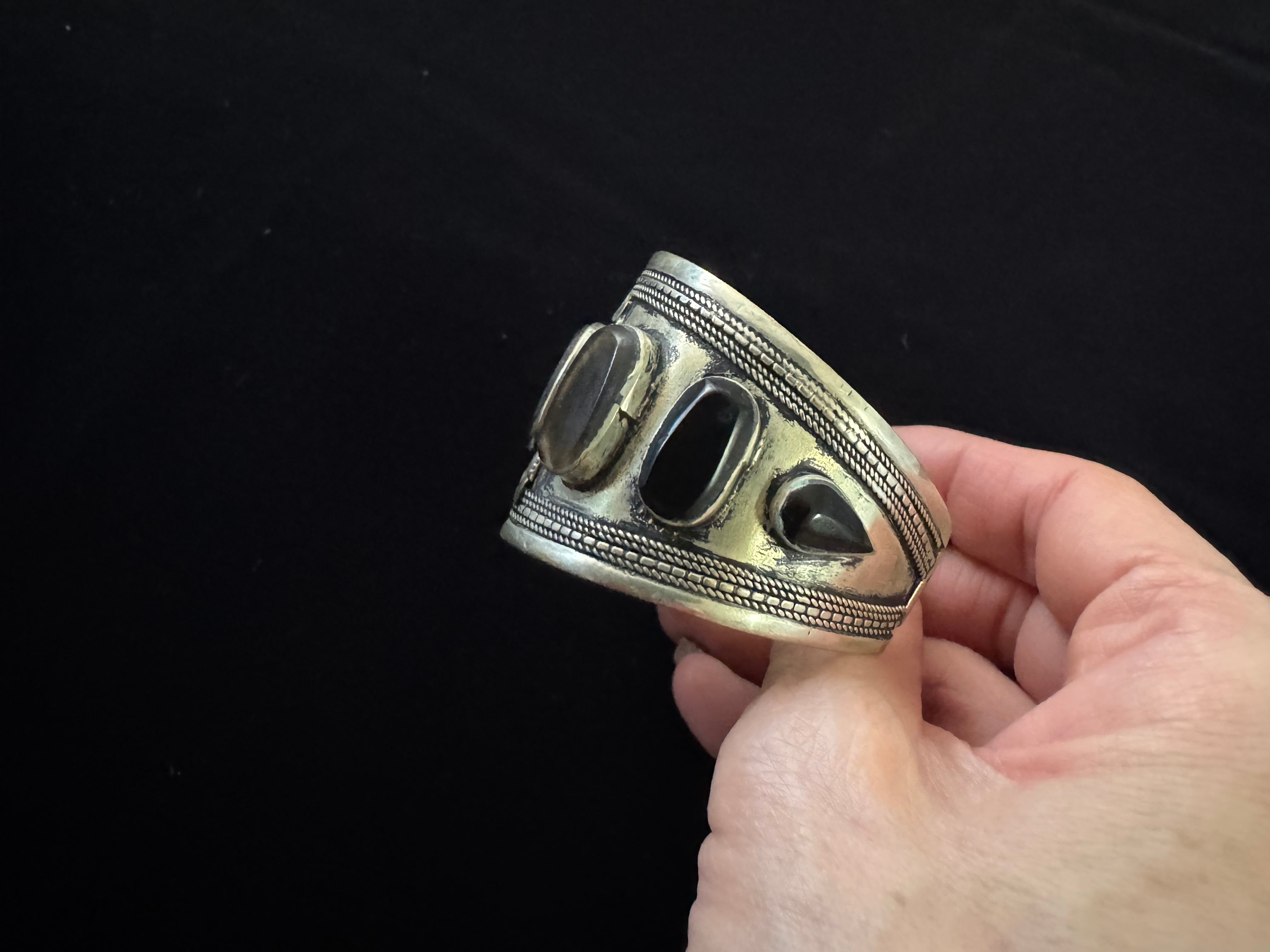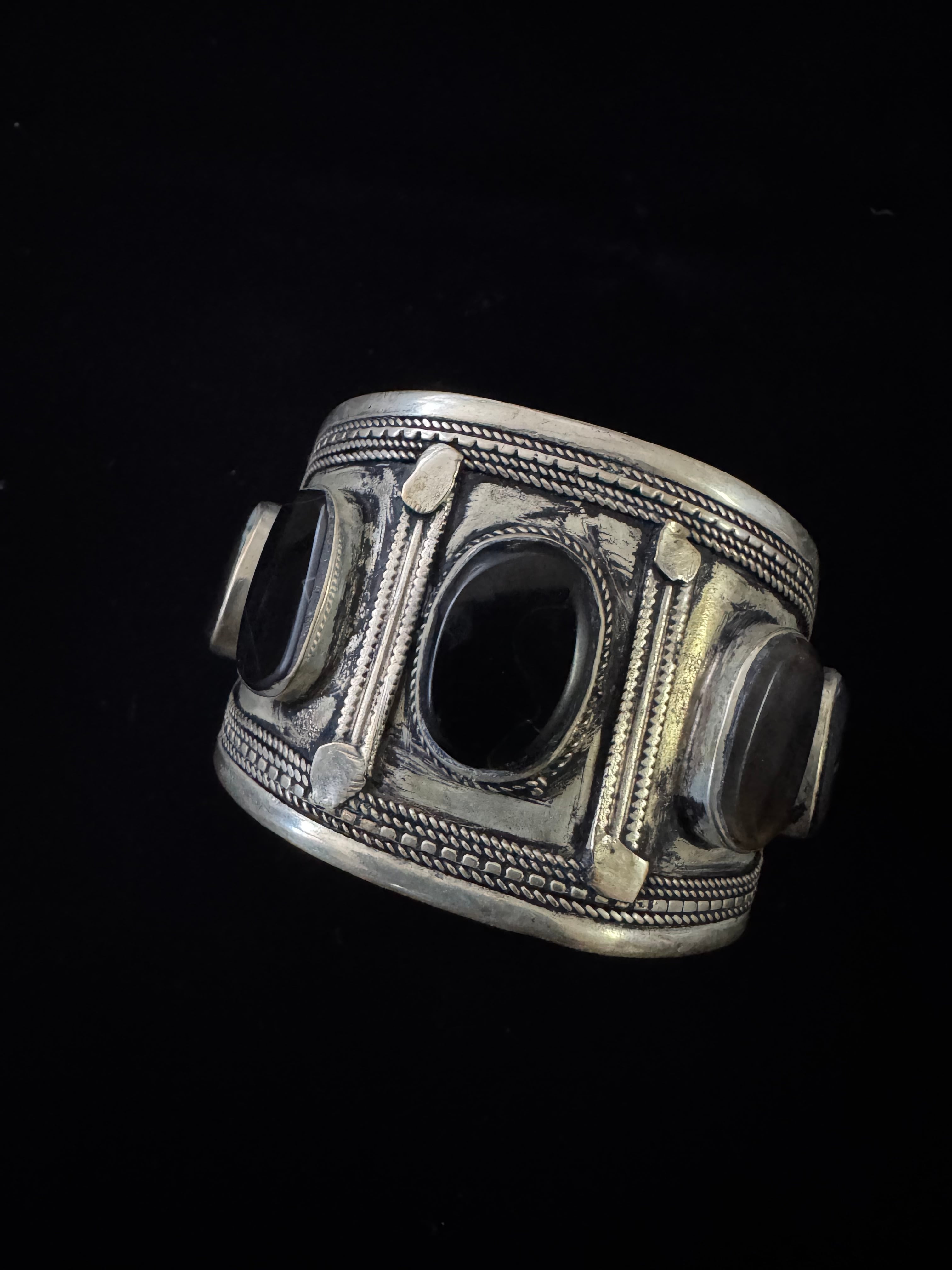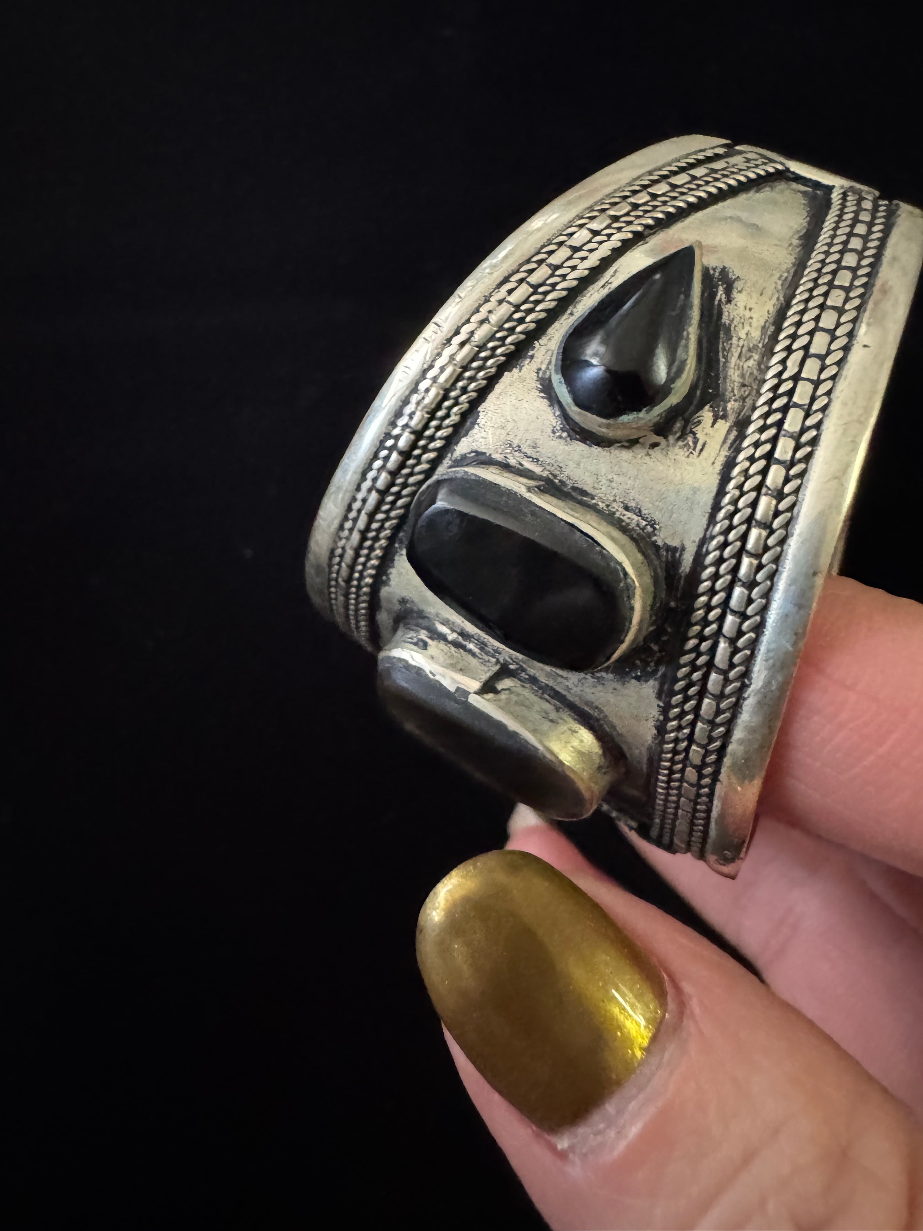 Afghan vintage Black Agate stone wide bangle