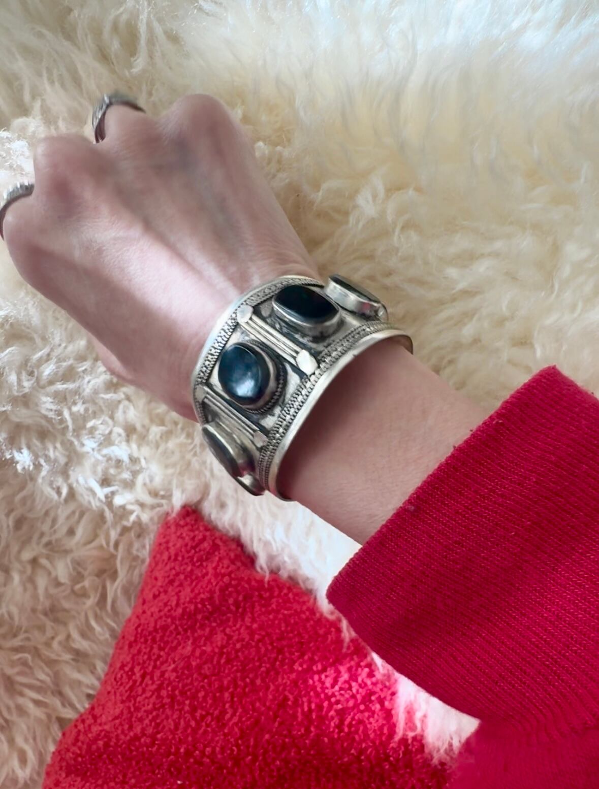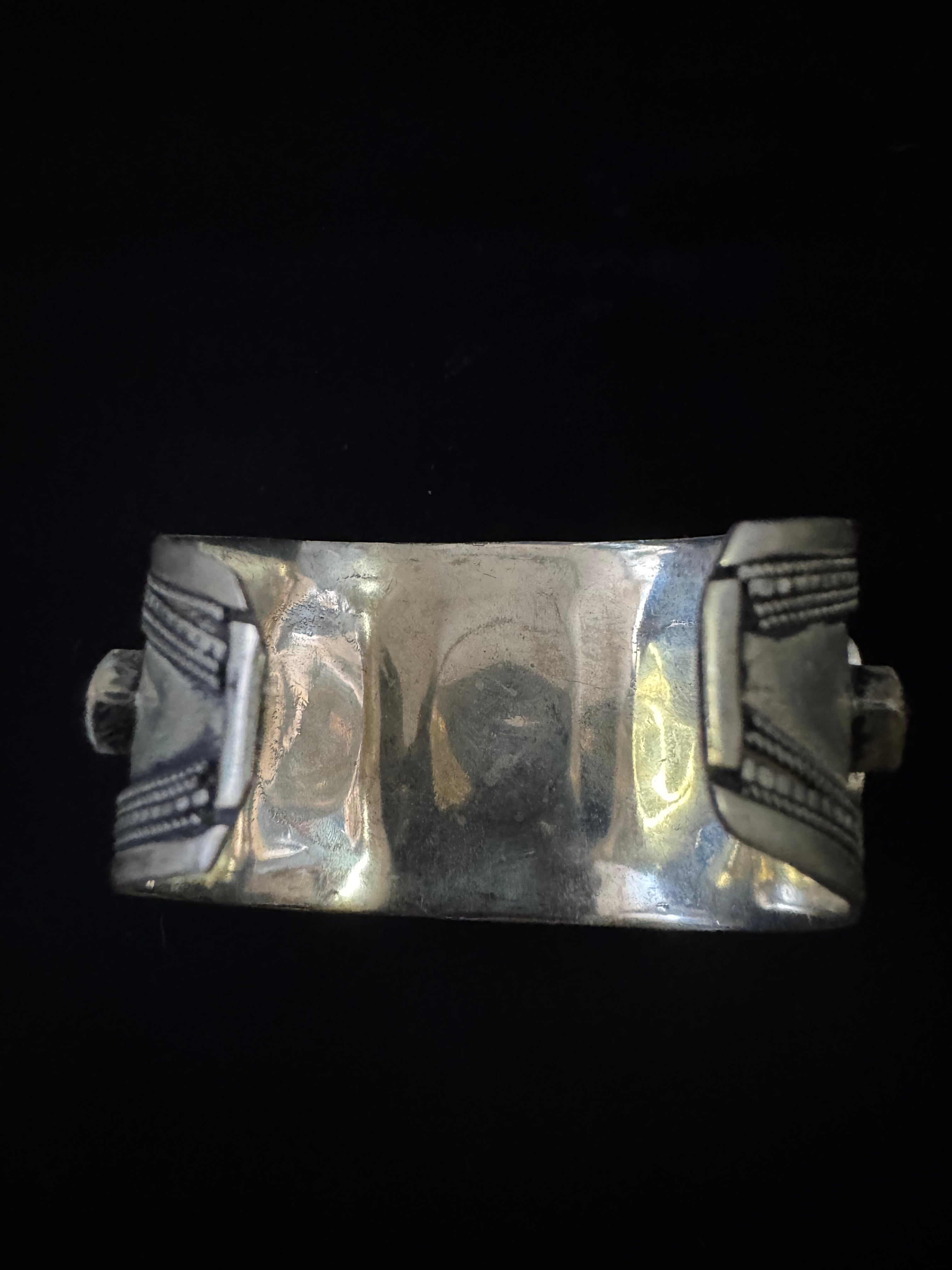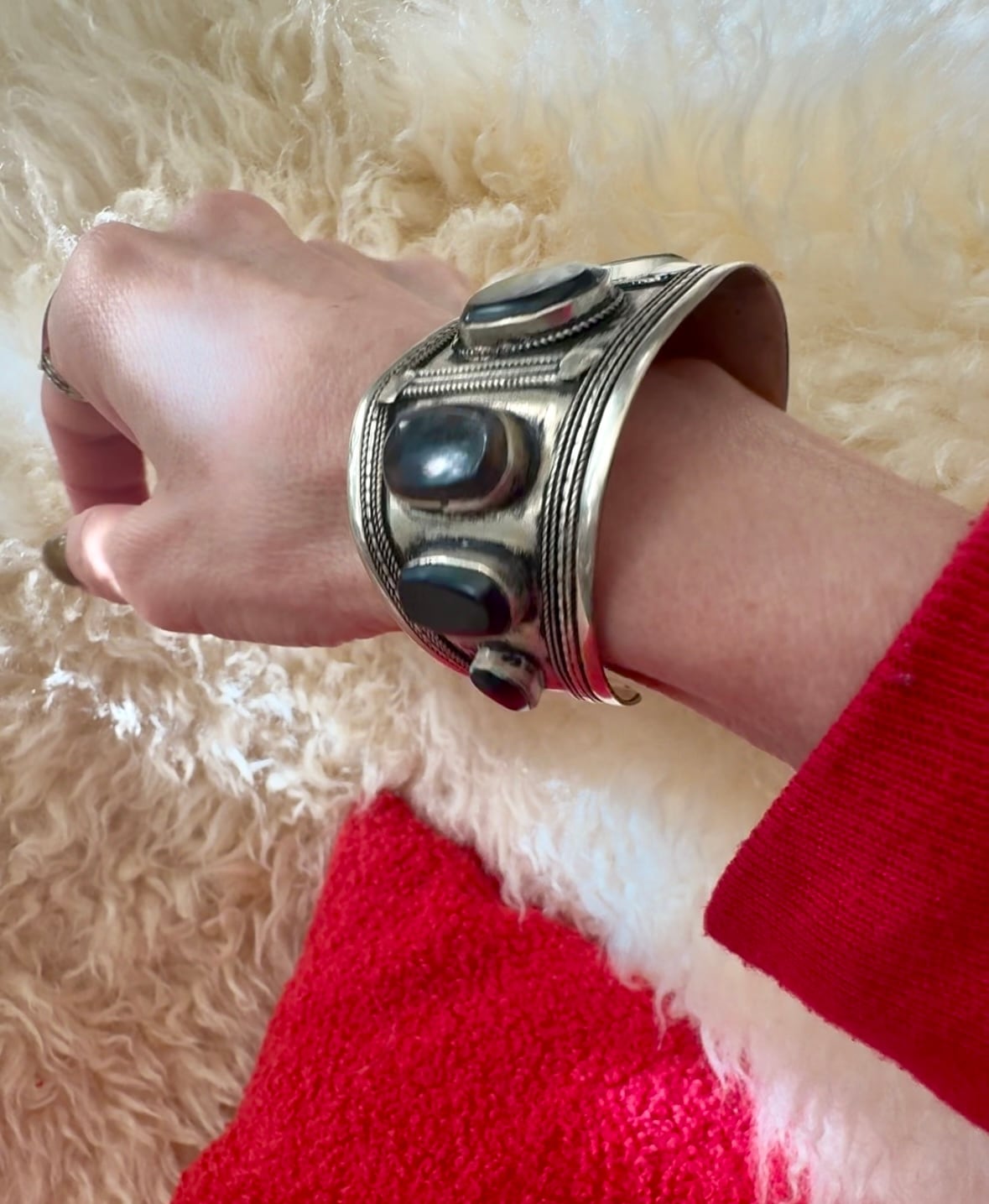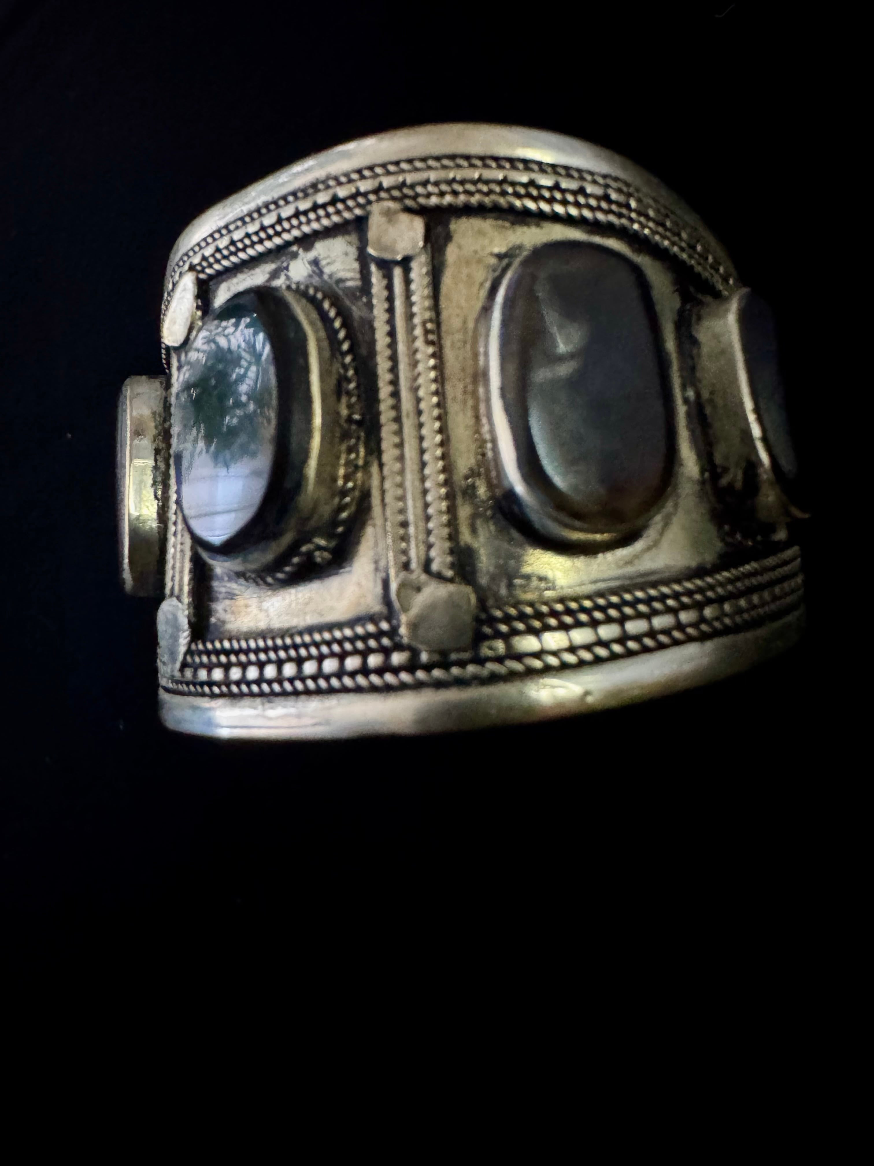 Afghan vintage Black Agate stone wide bangle