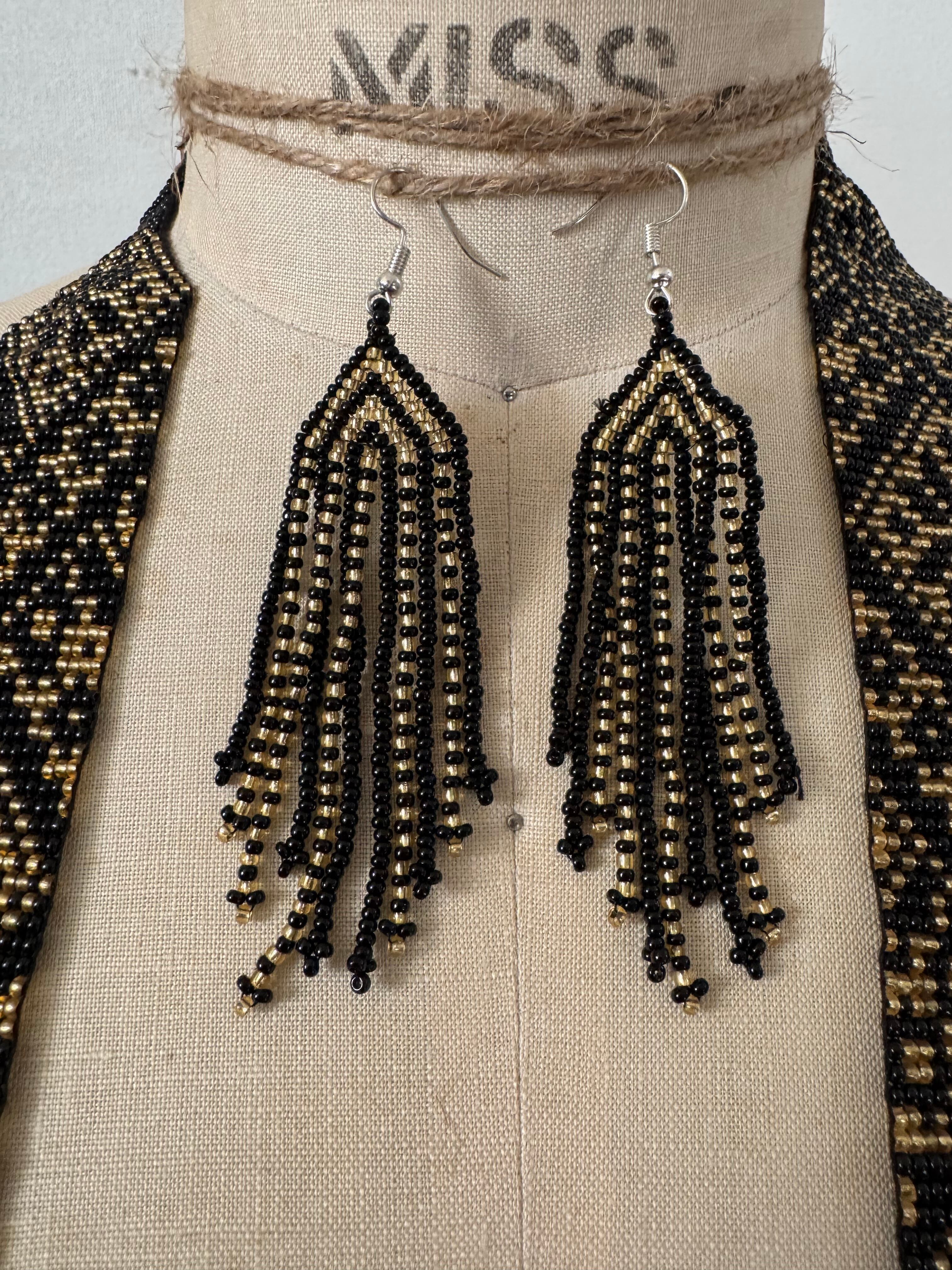 Mexican vintage Long Beads necklace, with Pierce _ GOLD × BLACK