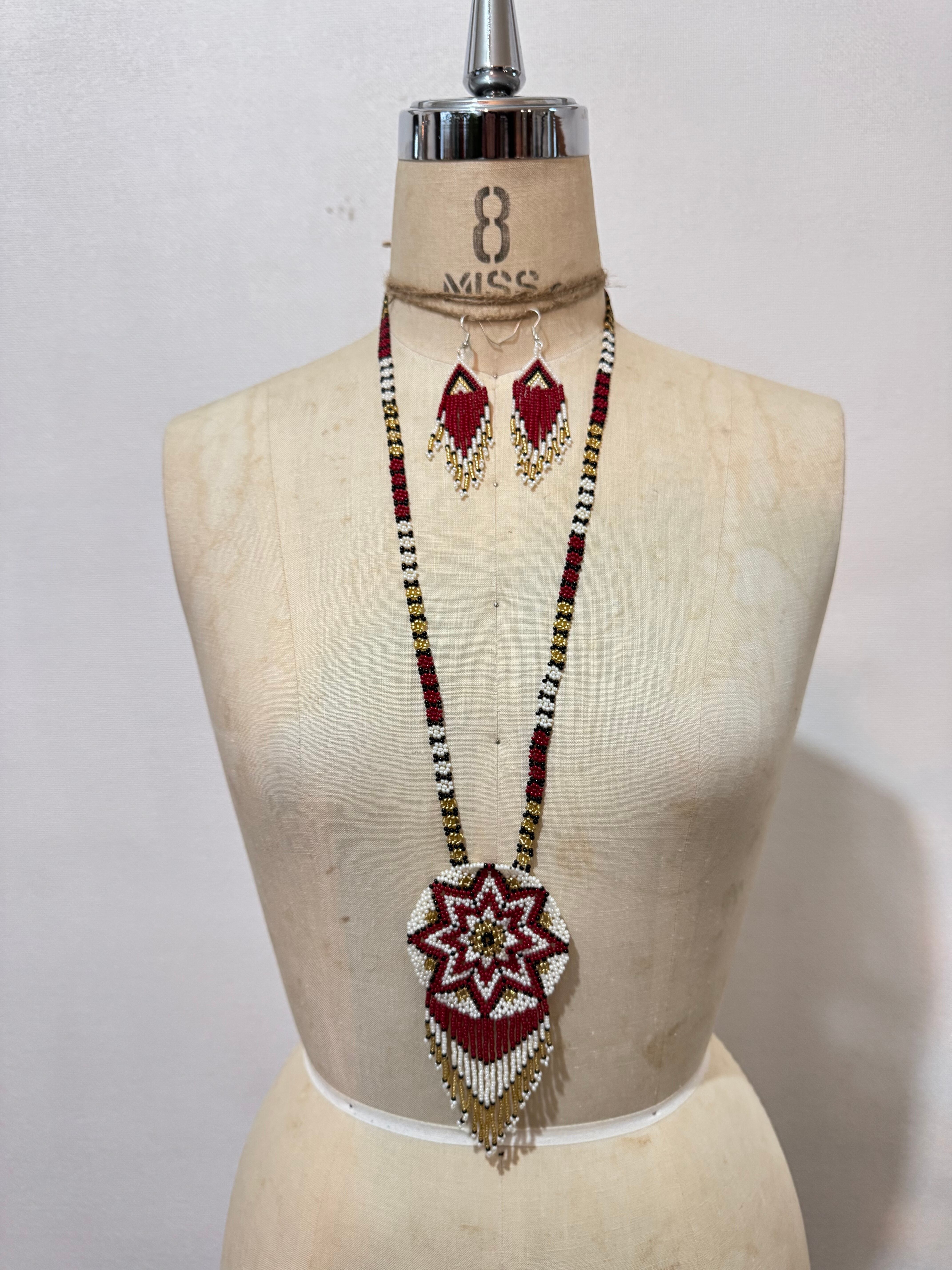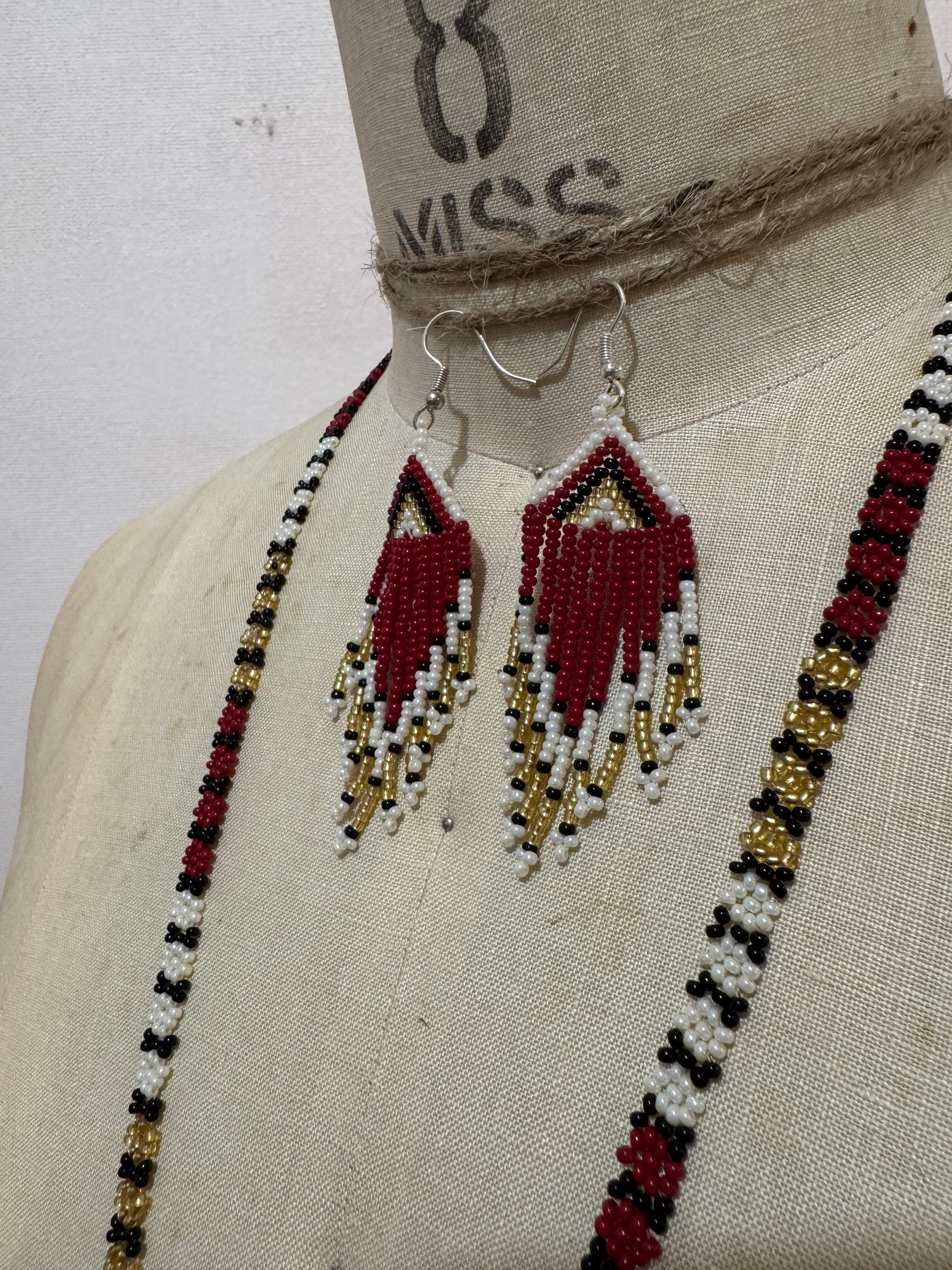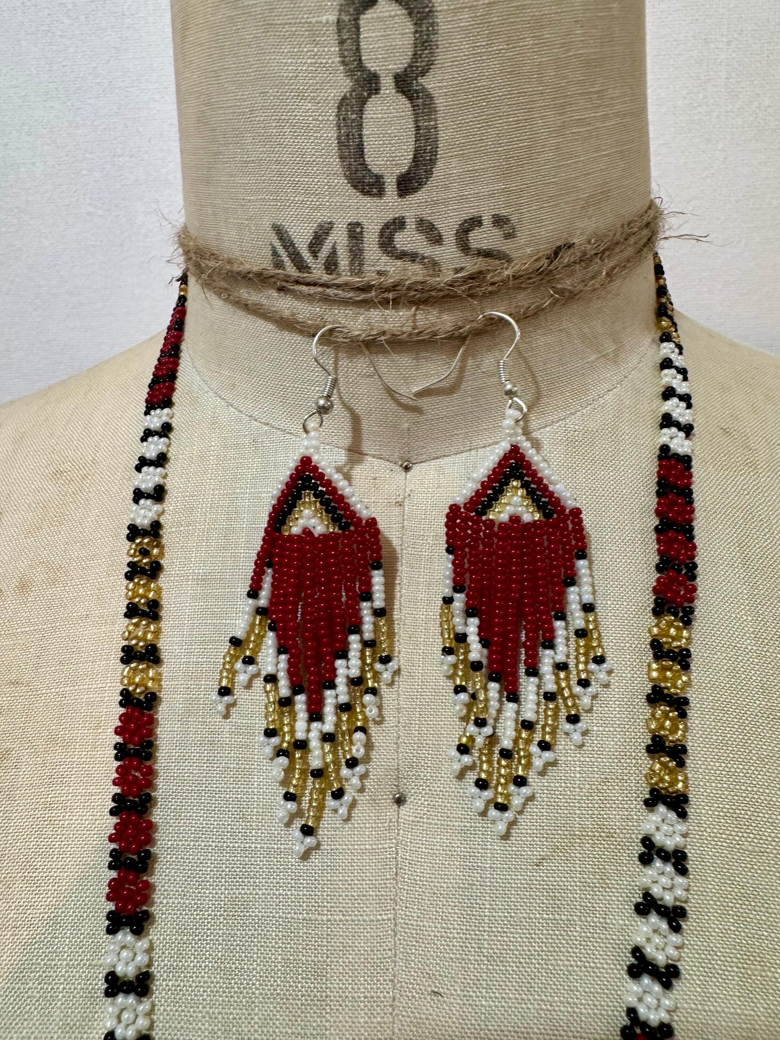 メキシカン ヴィンテージ ロング ビーズ ネックレス & ピアス