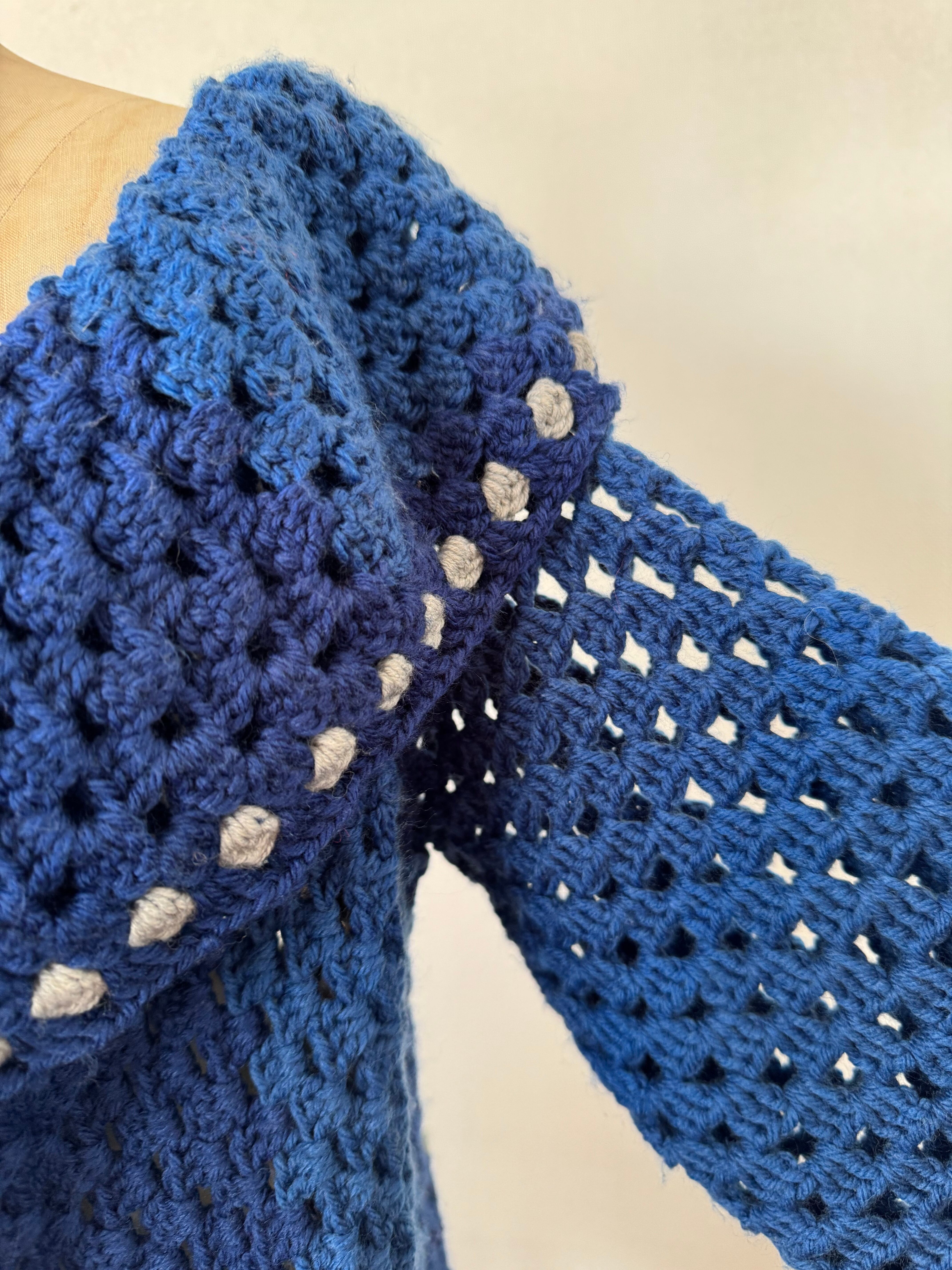 デザイン性が高いハンドメイドならではの グラニー ニット カーディガンです。