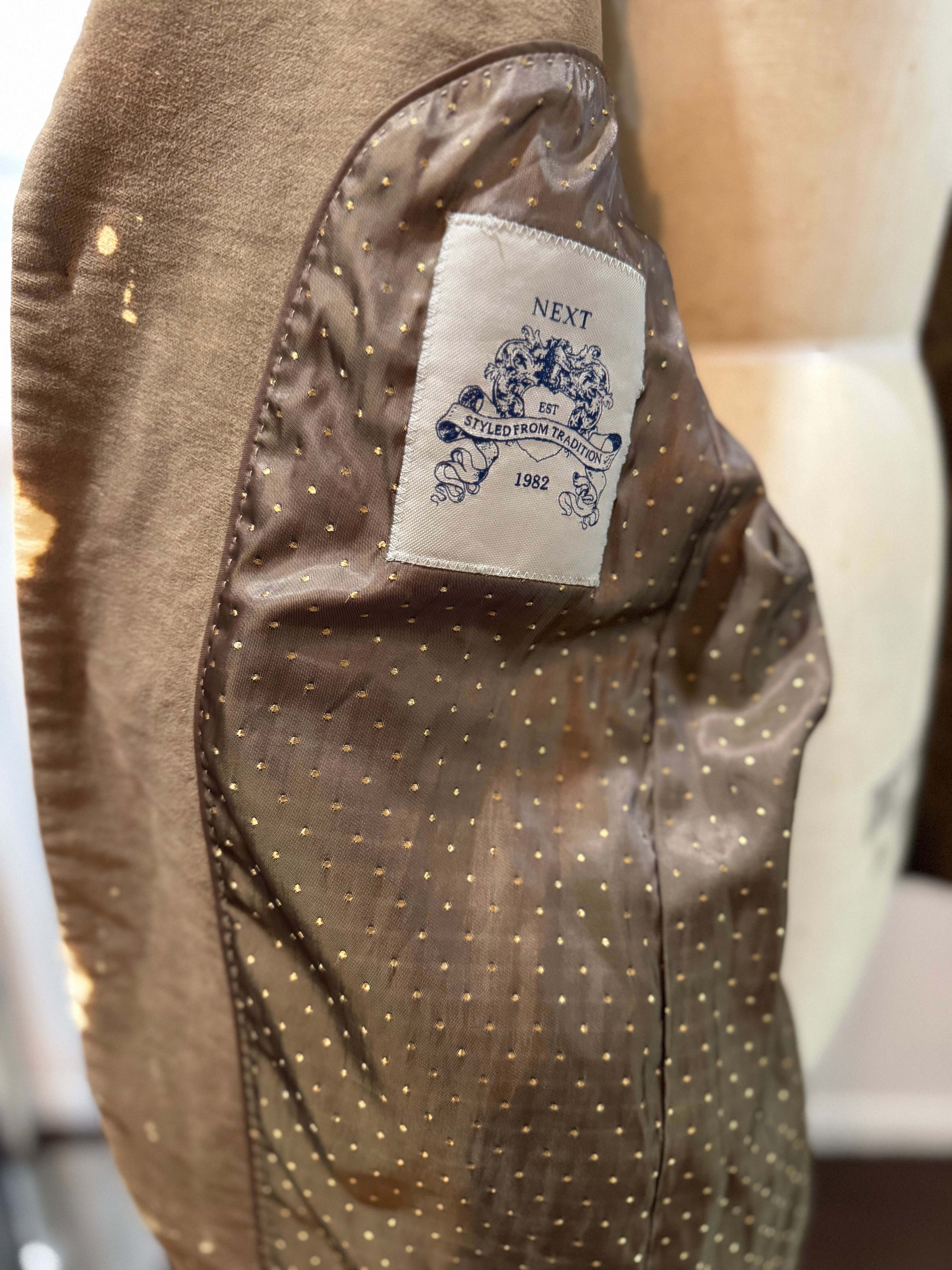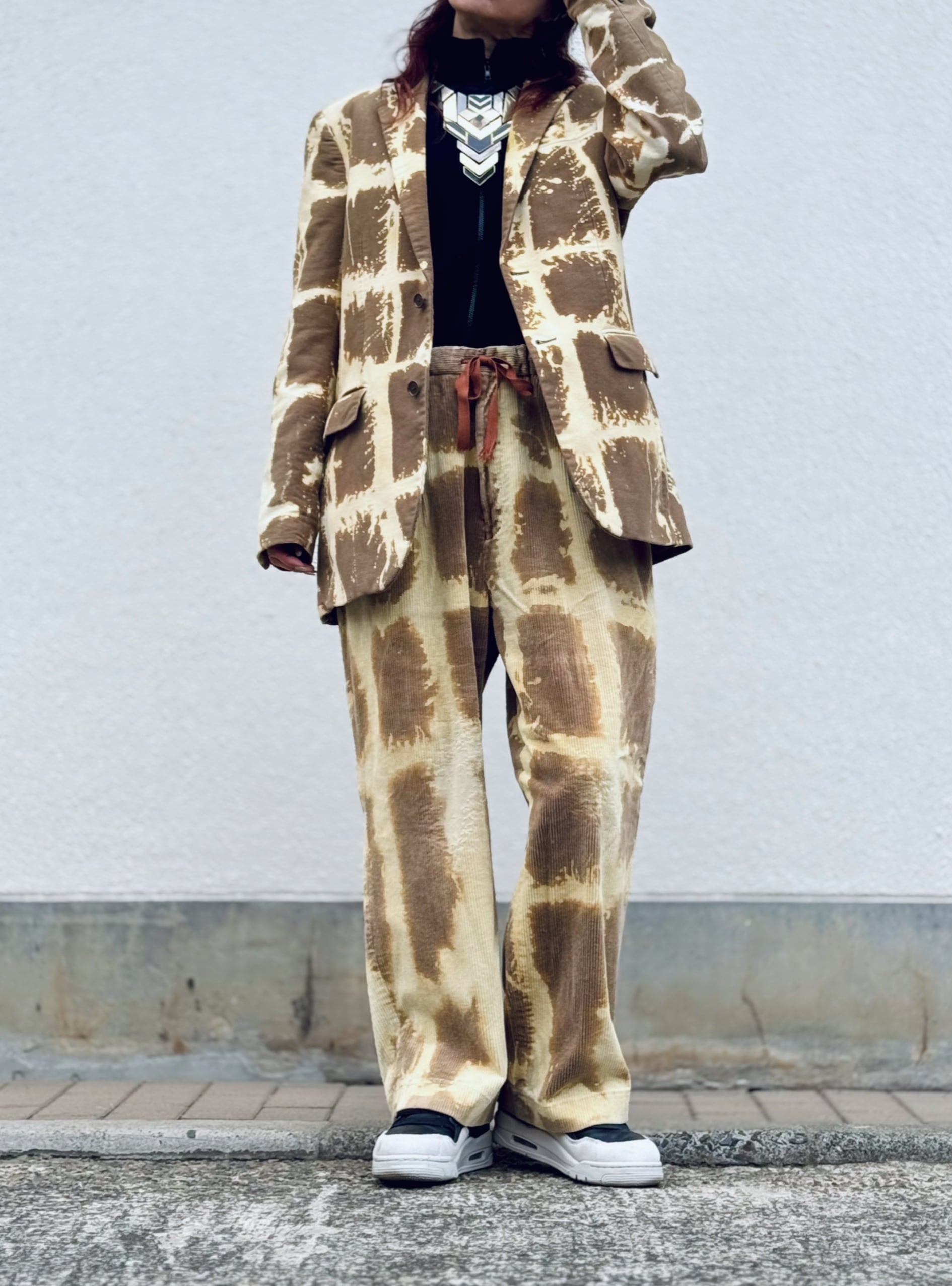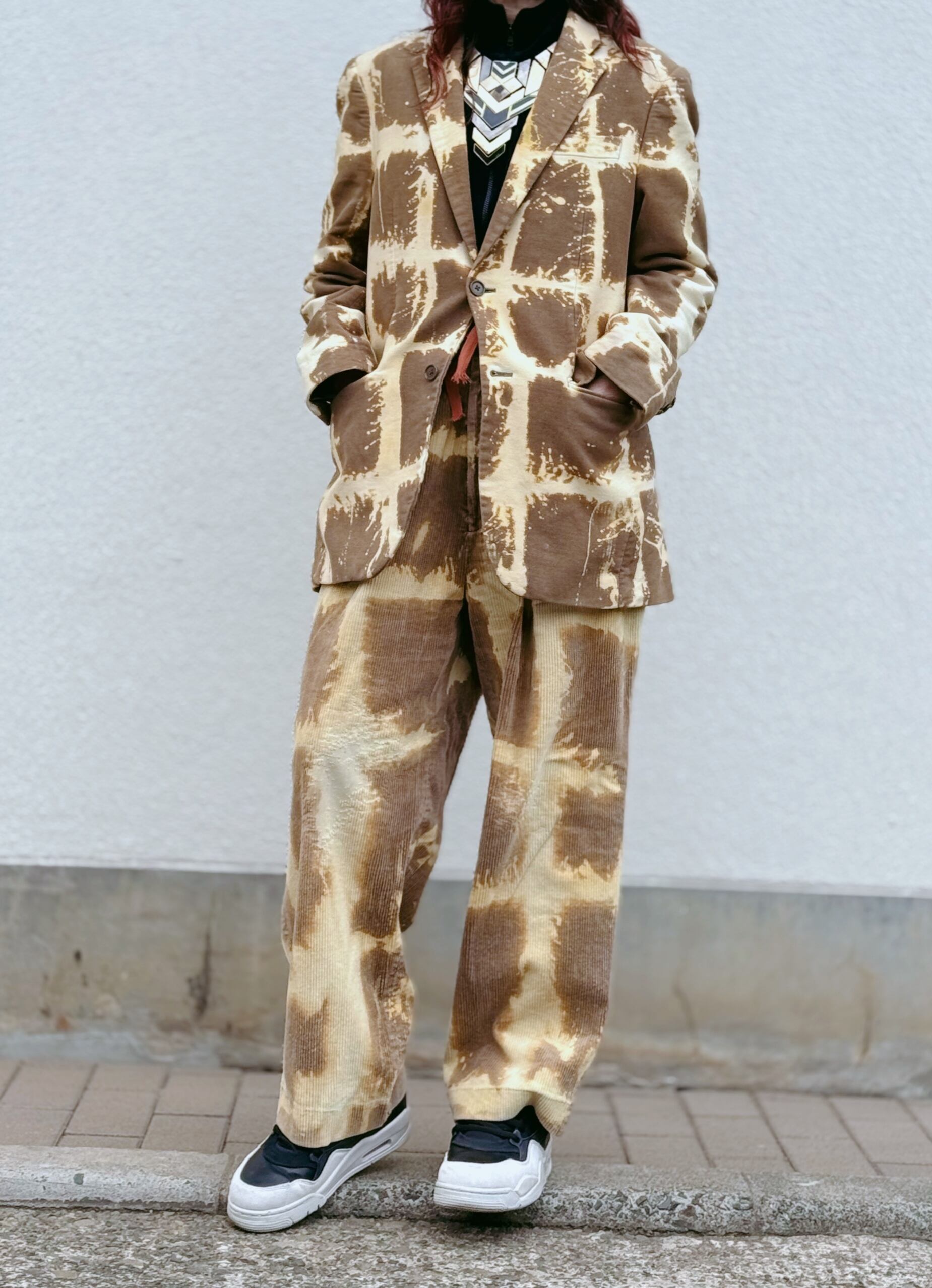 シルエットも仕立ても綺麗なジャケットを、インパクトのあるブリーチ アウトでアバンギャルドに。