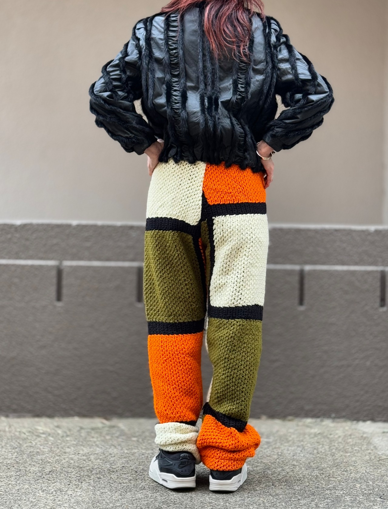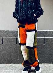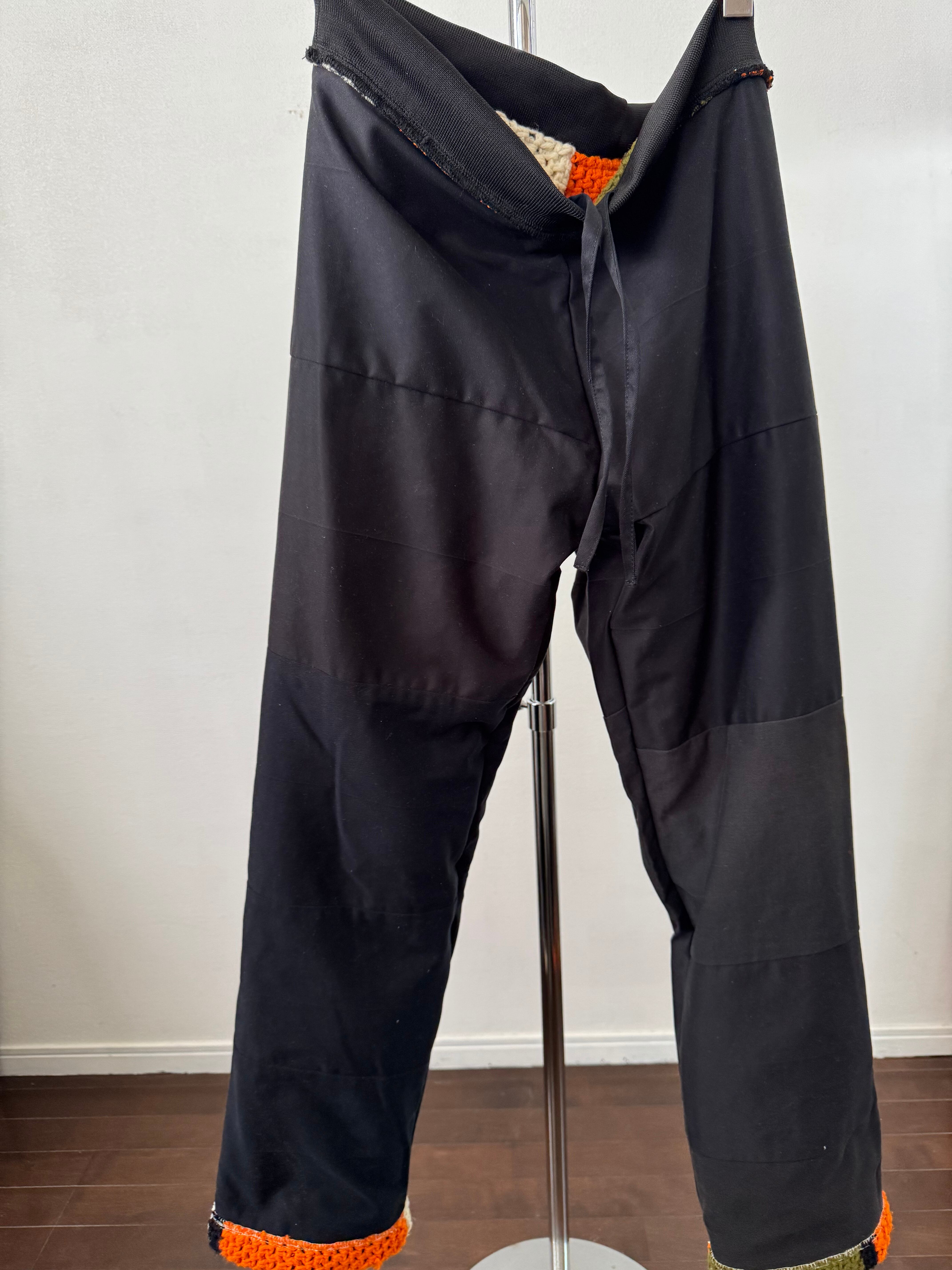 ヴィンテージのグラニー ブランケットとコットン チノ パンツをドッキングした再構築のパンツです。
